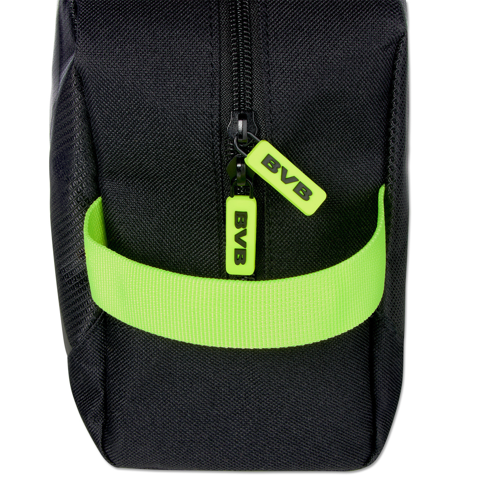 Für alle echten BVB-Fans, die viel unterwegs sind: Diese Kulturtasche von Borussia Dortmund ist einfach super praktisch! Einfach ausklappen, aufhängen und schon hast du alle deine Pflegeprodukte griffbereit. In den vielen Netzfächern findet alles Platz - Zahnbürste, Duschgel, Rasierer, was auch immer du brauchst. Das Design ist natürlich typisch BVB: schwarz mit silbernem Vereinsemblem und dem Schriftzug 'Borussia Dortmund'. Geschlossen misst sie 23x15x8cm - kompakt genug für die Reisetasche, aber geräumig genug für alles Nötige. Aus 100% Polyester gefertigt, ist sie robust und langlebig. Und das Beste: Es gibt sogar einen kleinen Spiegel und eine Trageschlaufe! Perfekt für die Sportsachen, Wochenendtrips oder einfach fürs Fitnessstudio. Zeig deine Liebe zu den Schwarz-Gelben auch unterwegs - mit dieser stylischen und funktionalen Kulturtasche!