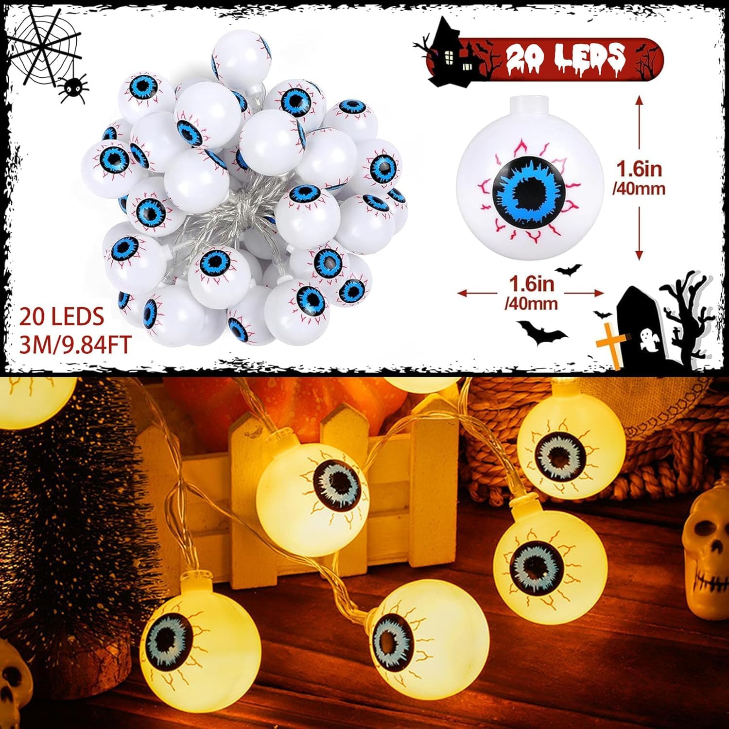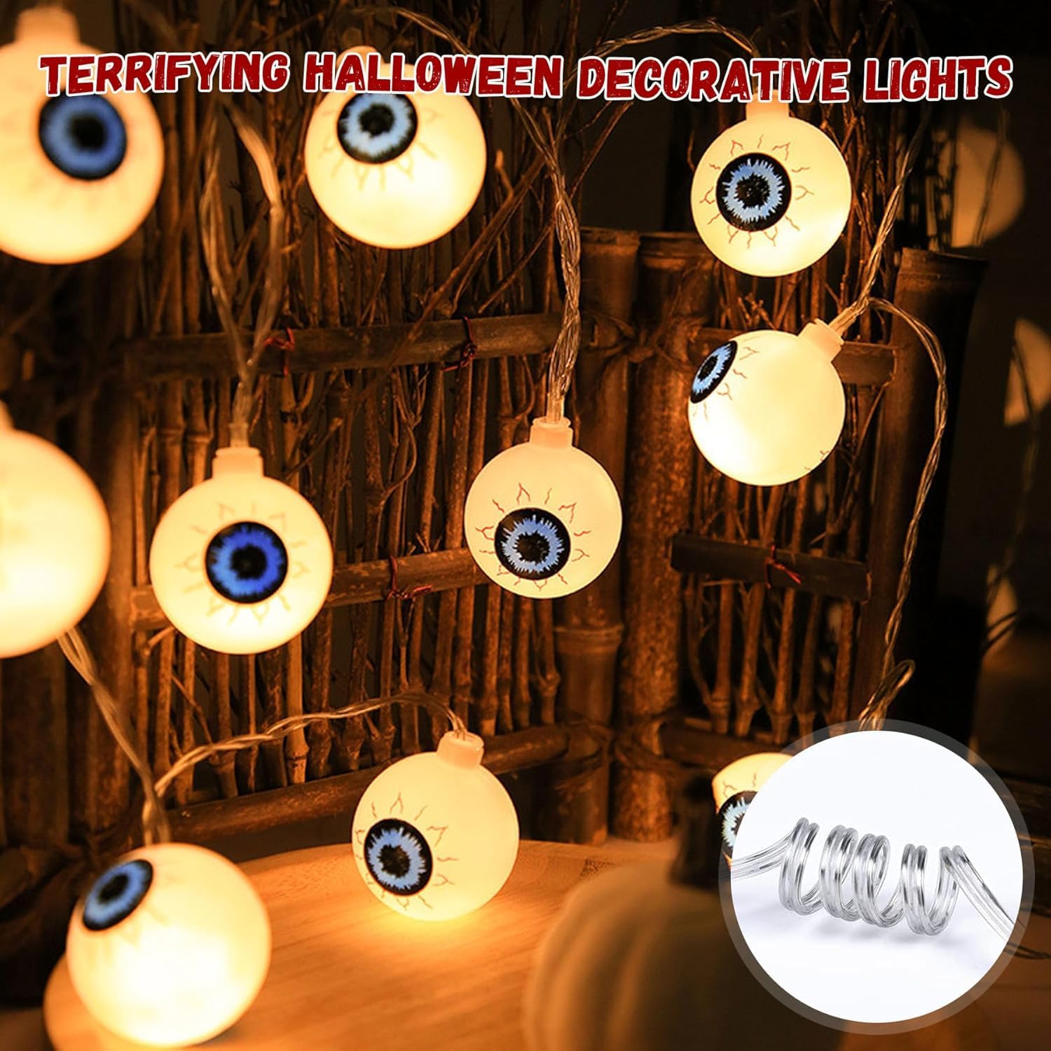 Perfekt für die gruselige Jahreszeit! Diese mega coole Lichterkette mit 20 lebensechten Augäpfeln bringt Halloween-Stimmung in dein Zuhause. Die 3m lange Kette mit warmweißen LEDs ist batteriebetrieben (3x AA, nicht enthalten) - super flexibel ohne lästige Kabel! Zwei Modi: Dauerlicht oder Blinklicht für extra Gruselfaktor. Die 3D-Augäpfel mit blutunterlaufenen Details sehen echt unheimlich aus. Einfach an Türrahmen, Fenstern, Kaminen oder Zäunen befestigen - sowohl innen als auch außen. Perfekt für Halloween-Partys, Grusel-Deko oder als Geschenk für Halloween-Fans. Die flexible Kette lässt sich in jede Form bringen. Mach dein Zuhause zur gruseligsten Bude der Straße! Einfach Batterien rein und sofort loslegen mit der Dekoration. Diese Lichterkette ist ein echter Hingucker und garantiert für Gänsehaut-Momente!