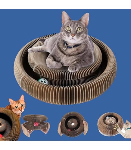 Der ultimative Spielspaß für deine Katze! Dieser Kratzkokon ist ein echtes 4-in-1 Wunder: Kratzbrett, Spielzeug, Bett und Entspannungsplatz in einem. Das geniale Akkordeon-Design lässt sich ganz einfach falten und in verschiedene Formen bringen - mal als Tunnel, mal als gemütliches Bett. Mit integrierter Kugelbahn, die den Jagdinstinkt weckt und für stundenlange Beschäftigung sorgt. Aus robustem Recyclingkarton gefertigt, beidseitig nutzbar und hält bis zu 6x länger als normale Kratzbretter. Schützt deine Möbel vor Krallen und gibt deiner Katze einen eigenen Rückzugsort. Perfekt gegen Langeweile und Stress - deine Katze wird es lieben! Einfach aufstellen und dem Katzenglück zusehen!