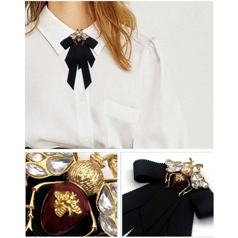 Vintage Fliege Mit Biene Kristall Brosche - Barock Stil Damen Accessoire