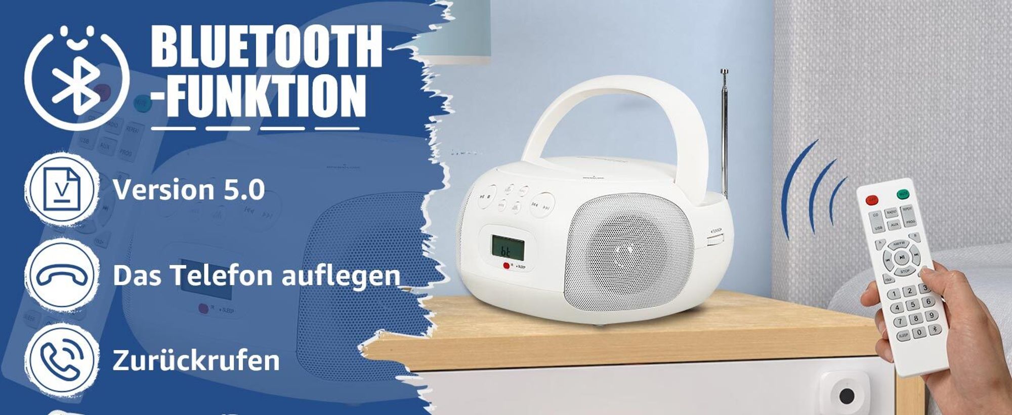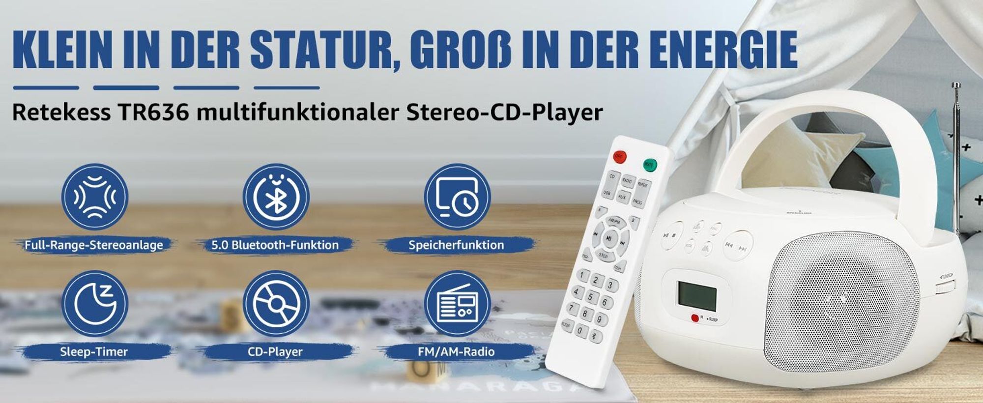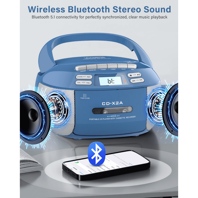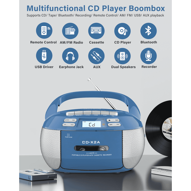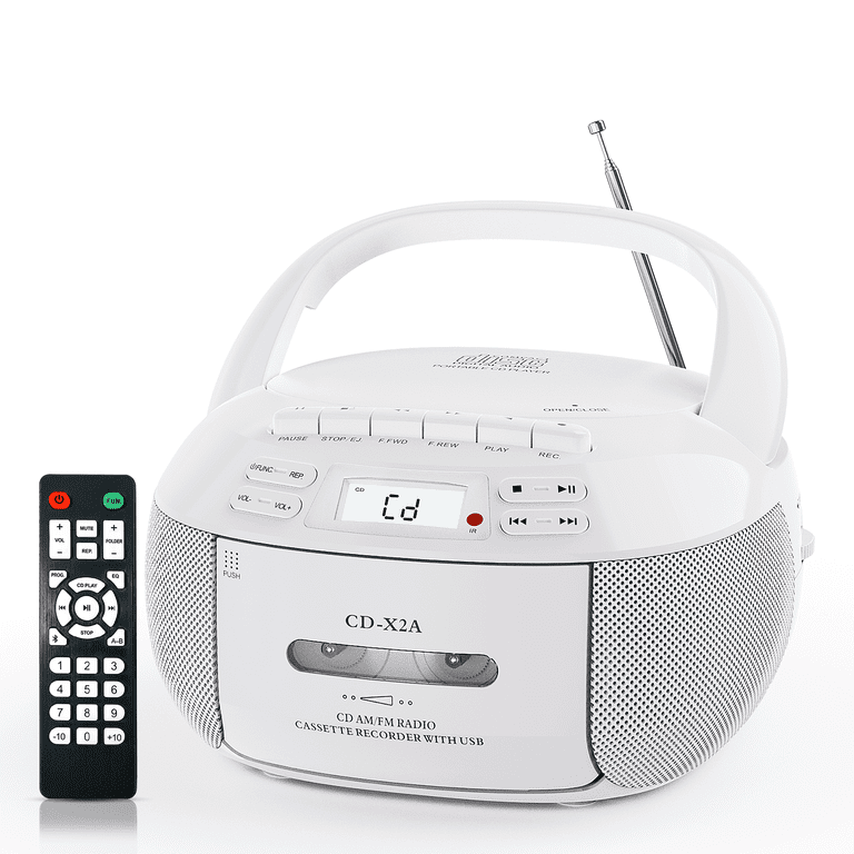 Erinnerst du dich noch an CDs? Dieser coole tragbare CD-Player bringt den Retro-Sound zurück! Spielt nicht nur CDs ab, sondern hat auch Bluetooth, FM-Radio und USB-Anschluss. Mit nur 34 cm Größe und 1,2 kg Gewicht nimmst du ihn überall mit - ob Garten, Balkon oder Picknick. Das LCD-Display mit Nachtlicht ist super für ältere Leute lesbar. Läuft mit Netzteil oder 6 C-Batterien (nicht dabei). Perfekt als Geschenk für Eltern oder Großeltern, die ihre alten CD-Sammlungen wiederentdecken wollen. Einfach CD einlegen, Bluetooth verbinden oder Radio anmachen - der Sound ist überall dabei!