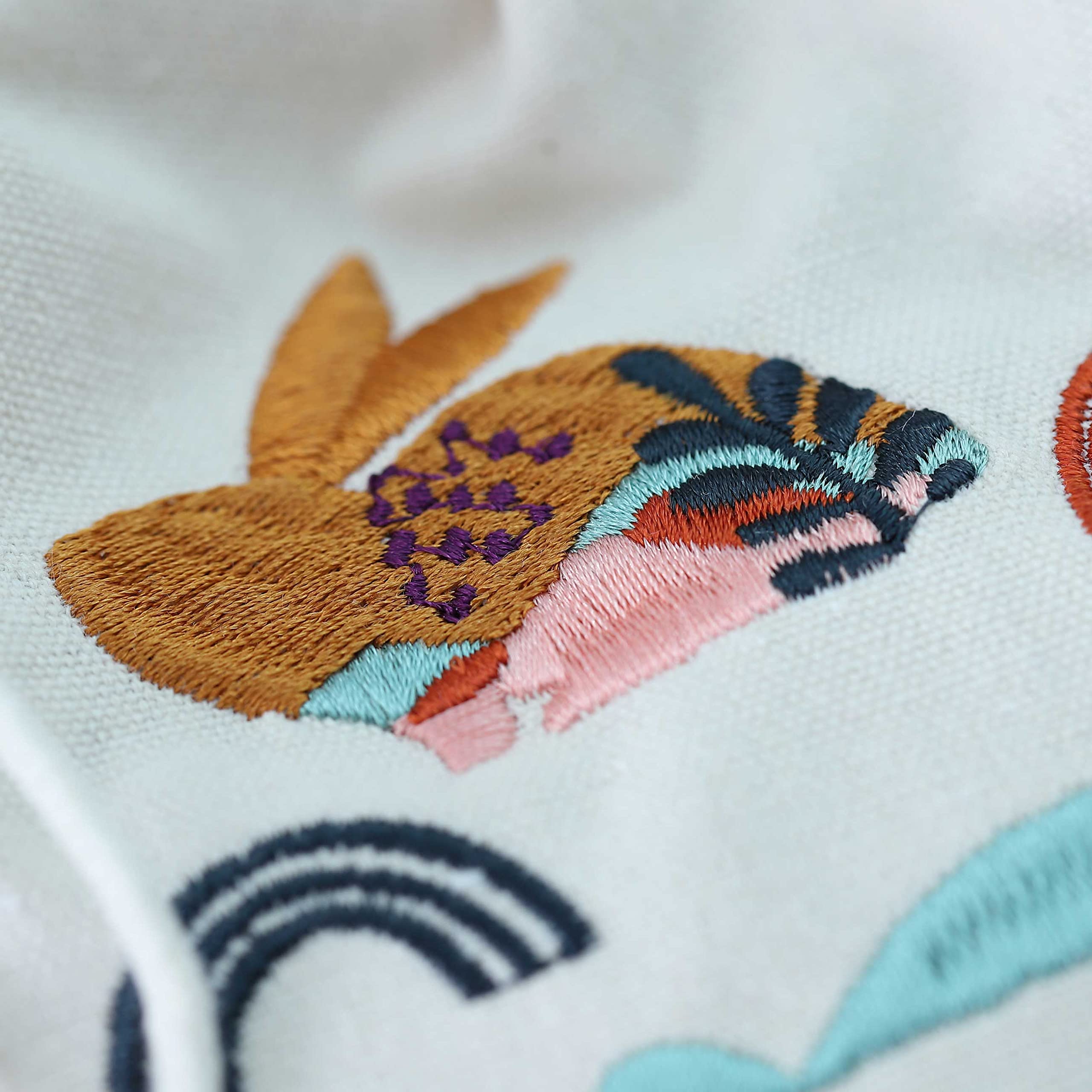 Wunderschöne bestickte Säckchen im 6er-Set! Jedes mit floralem Design und lieben Botschaften wie 'You are loved' und 'Thank you for everything'. ❤️\n\nAus 80% Baumwolle + 20% Polyester - weich und langlebig. Maße: 13x18cm, perfekt für Schmuck, Duftkräuter oder kleine Geschenke.\n\nSuper als nachhaltige Geschenkverpackung zum Muttertag, Geburtstag oder einfach so. Wiederverwendbar und umweltschonend!\n\nNur 25g leicht - ideal für Reise-Koffer-Organizer oder als Deko im Zimmer. Bringt Frühlings-Feeling ins Haus!