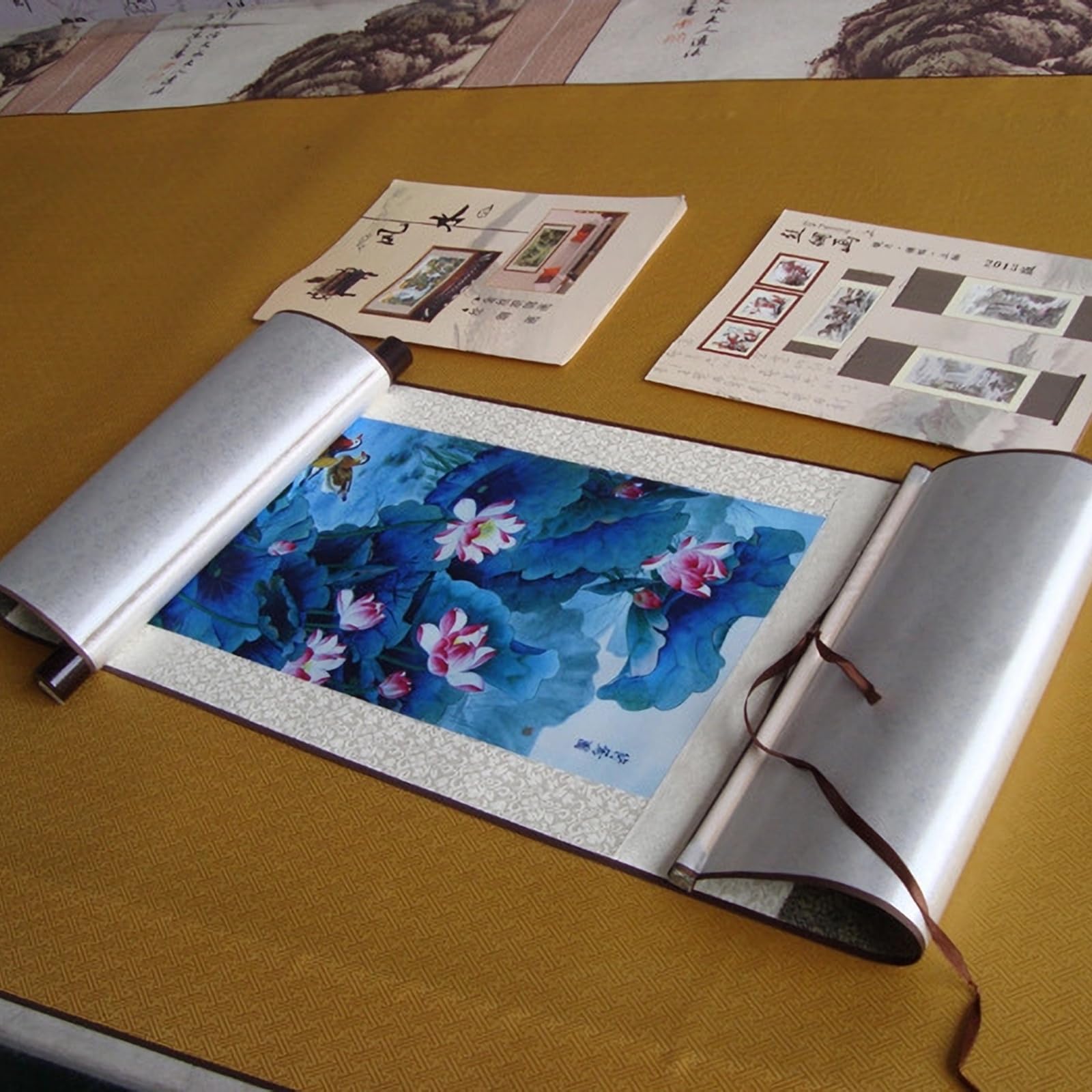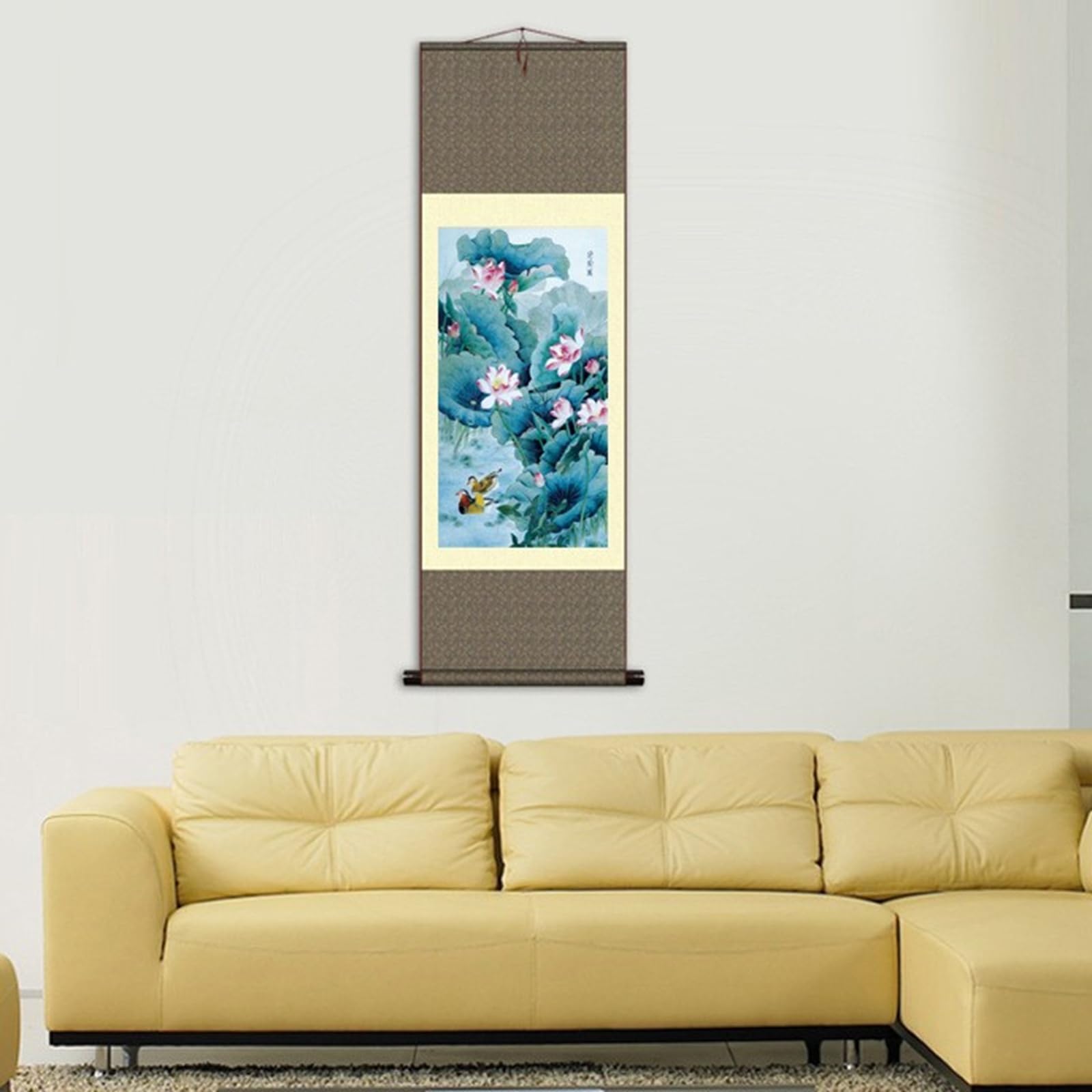 Wow, diese Lotus-Seidenmalerei ist einfach atemberaubend! Die zarten Pinselstriche auf hochwertiger Seide werden von einem edlen Brokatrahmen umhüllt und sehen einfach mega aus. Perfekt für alle, die asiatische Ästhetik lieben! Das Beste: Aufhängen ist total easy - ein Haken genügt und schon entfaltet sich die ganze Pracht dieser Schriftrolle. Die gewichteten Massivholzstreifen sorgen dafür, dass alles schön straff hängt und nicht wellig wird. Wenn du mal umziehst oder umdekorieren willst, rollst du sie einfach wieder zusammen - praktisch mitgelieferter Gurt inklusive! Die Farben bleiben übrigens auch nach Jahren noch frisch und lebendig, weil das Material gegen Verblassen behandelt ist. Ob im Wohnzimmer, Schlafzimmer, Büro oder sogar im Hotel - dieses Kunstwerk verleiht jedem Raum sofort eine besondere, zen-artige Atmosphäre. Ein absoluter Hingucker, der garantiert Gesprächsthema wird!