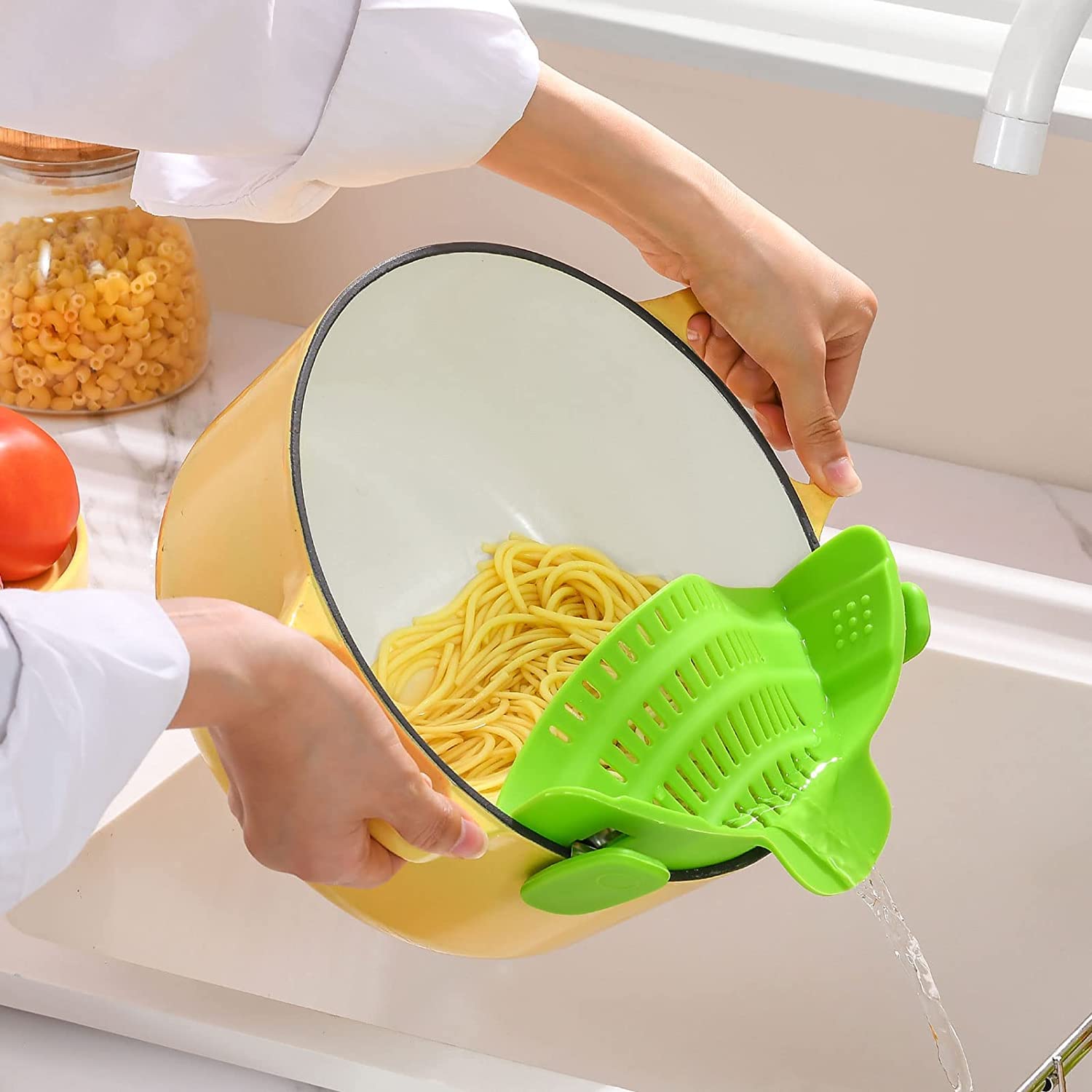 Endlich ein Sieb, das wirklich zu allen Töpfen passt! Dieses praktische Silikon-Sieb mit Clips ist der Küchen-Held, auf den du gewartet hast. Einfach an den Topfrand klippen und schon kann's losgehen mit Nudeln, Reis oder Gemüse abgießen.