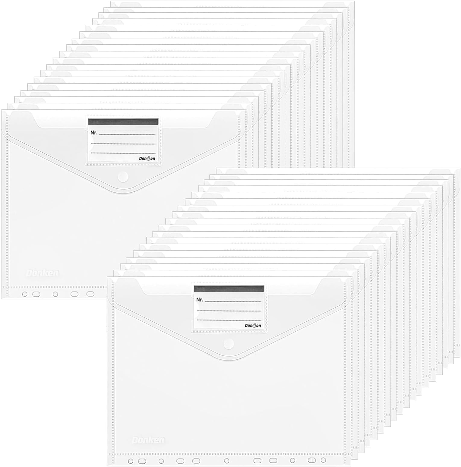 Endlich Ordnung im Dokumenten-Chaos! Dieses 30er Pack transparente A4-Dokumententaschen mit praktischem Druckknopf hält Ihre wichtigen Papiere sicher und geschützt. Perfekt für Büro, Schule oder Home-Office. Die extra-dicke Qualität ist robuster als viele vergleichbare Produkte - kein Knicken, kein Reißen! Mit 11 Lochung passen die Mappen in alle gängigen 2-, 3- und 4-Ring-Ordner. Das clevere Klettverschluss-Design hält sicher verschlossen, auch bei dickeren Dokumenten. Besonders praktisch: Die Etikettentasche auf der Vorderseite ermöglicht schnelles Finden ohne langes Suchen. Maße: 30,5x24 cm - also etwas größer als A4 für bequemeres Einlegen. Ob Rechnungen, Zeugnisse, Verträge oder Unterrichtsmaterialien - alles ist gut geschützt vor Staub, Feuchtigkeit und Verschmutzung. Leicht und transportabel - ideal auch für unterwegs. Einfach in der Handhabung, langlebig und wirklich praktisch. Die perfekte Lösung für alle, die ihre Dokumente im Griff behalten wollen!