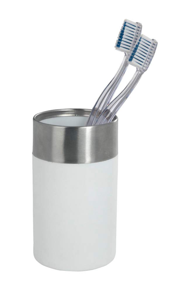 Der Wenko Zahnputzbecher Creta bringt stylisches Design in dein Badezimmer! In strahlendem Weiß mit satinierten Edelstahl-Elementen sieht er einfach klasse aus. Mit 7,3cm Durchmesser und 11cm Höhe hat er genau die richtige Größe für Zahnbürsten, Zahnpasta und alles was du morgens und abends brauchst. Aus hochwertigem Soft-Touch Kunststoff der sich angenehm anfühlt und bruchsicher ist. Das zeitlose Design passt zu jedem Badezimmer-Stil - ob modern, klassisch oder Landhaus. Und praktisch ist er auch: Leicht zu reinigen, stabil stehend, und die Edelstahl-Elemente verleihen ihm das gewisse Etwas. Wenko steht seit den 1950ern für gute Ideen im Haushalt - und das merkt man! Perfekt als Einzelstück oder als Teil eines kompletten Bad-Ensembles. Mach dein Badezimmer mit diesem schicken Becher ein bisschen schöner!
