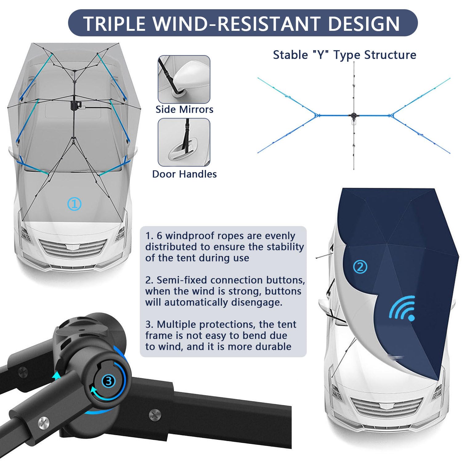 Genialer Sonnenschutz für dein Auto! Diese automatische Markise mit Fernbedienung öffnet sich in nur 8 Sekunden und ist in 30 Sekunden installiert. Größe: 5,2 x 2,4 Meter - passt für die meisten Limousinen, SUVs und Pickups. Mit Luftzirkulationsschicht senkt sie die Innentemperatur um bis zu 30°C. Wasserdicht, UV-beständig und windstabil durch 4 verstellbare Seile. Diebstahlsicherung mit Stahldraht integriert. Abnehmbarer Akku hält bis zu 2 Monate. Perfekt für Camping, Picknick oder einfach zum Parken in der Sonne. Einfach zusammenklappbar für platzsparende Aufbewahrung!