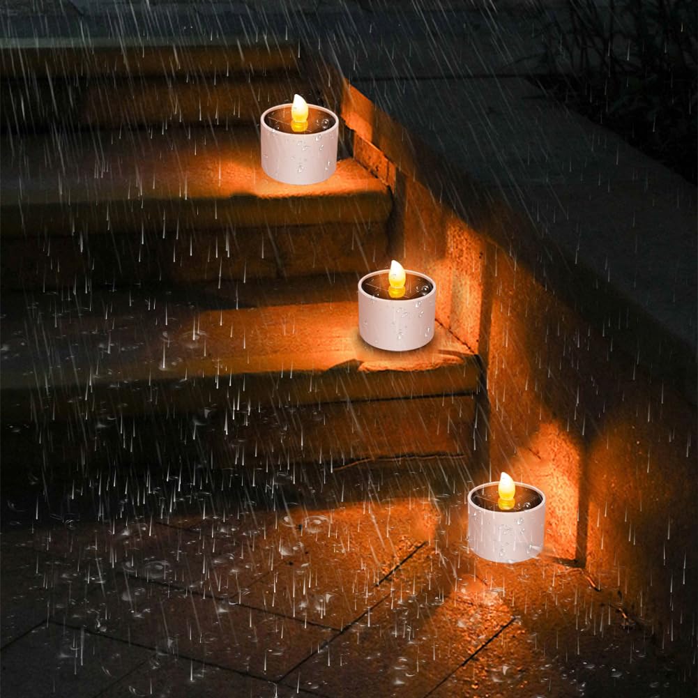 Diese Solar-Teelichter sind einfach genial! 6 Stück im Set, die komplett mit Solarenergie laufen. Der integrierte 300mAh Akku lädt sich bei Sonnenlicht auf - nach 8 Stunden Sonne leuchten sie bis zu 8 Stunden! Das Beste: Sie schalten sich automatisch bei Dunkelheit ein und bei Tageslicht wieder aus. Mit IP65 wasserdicht - perfekt für draußen bei Regen oder Schnee. Der warmweiße Flackereffekt sieht aus wie echte Kerzen, aber völlig sicher ohne Feuer. Aus hochwertigem Harz gefertigt, halten sie auch extremes Wetter aus. Super für den Garten, Balkon, Terrasse oder als Grablicht. Auch toll für Hochzeiten, Partys oder Weihnachtsdekoration. Da keine Hitze entsteht, perfekt für Familien mit Kindern und Haustieren. Einfach hinstellen und der Sonne beim Aufladen zusehen - praktischer und umweltfreundlicher geht's nicht!