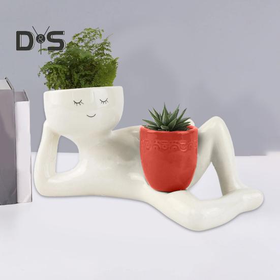 Oh wie niedlich! Dieser Blumentopf in Menschenform bringt sofort Leben in deine Pflanzensammlung. Mit dem lustigen Gesicht und den Armen ist jeder Topf ein kleines Kunstwerk - ein echter Hingucker im Wohnzimmer, Büro oder auf der Fensterbank! Aus robustem, wetterfestem Material gemacht, kannst du ihn sowohl drinnen als auch draußen auf Balkon oder Terrasse verwenden. Perfekt für Sukkulenten, Kakteen, Kräuter oder kleine Blumen - die kompakte Größe ist ideal für Mini-Pflanzen. Jeder Topf ist handgefertigt und ein Unikat mit viel Liebe zum Detail. Die schwarze Farbe passt zu jedem Einrichtungsstil und die hochwertige Verarbeitung garantiert Langlebigkeit. Ob als Deko für dein Zuhause oder als originelles Geschenk für Pflanzenfreunde - dieser Topf sorgt garantiert für Schmunzler! Einfach bepflanzen, hinstellen und sich an dem charmanten Gesicht erfreuen. Deine Pflanzen bekommen damit sofort viel mehr Persönlichkeit - und deine Wohnung einen ganz besonderen Hingucker!