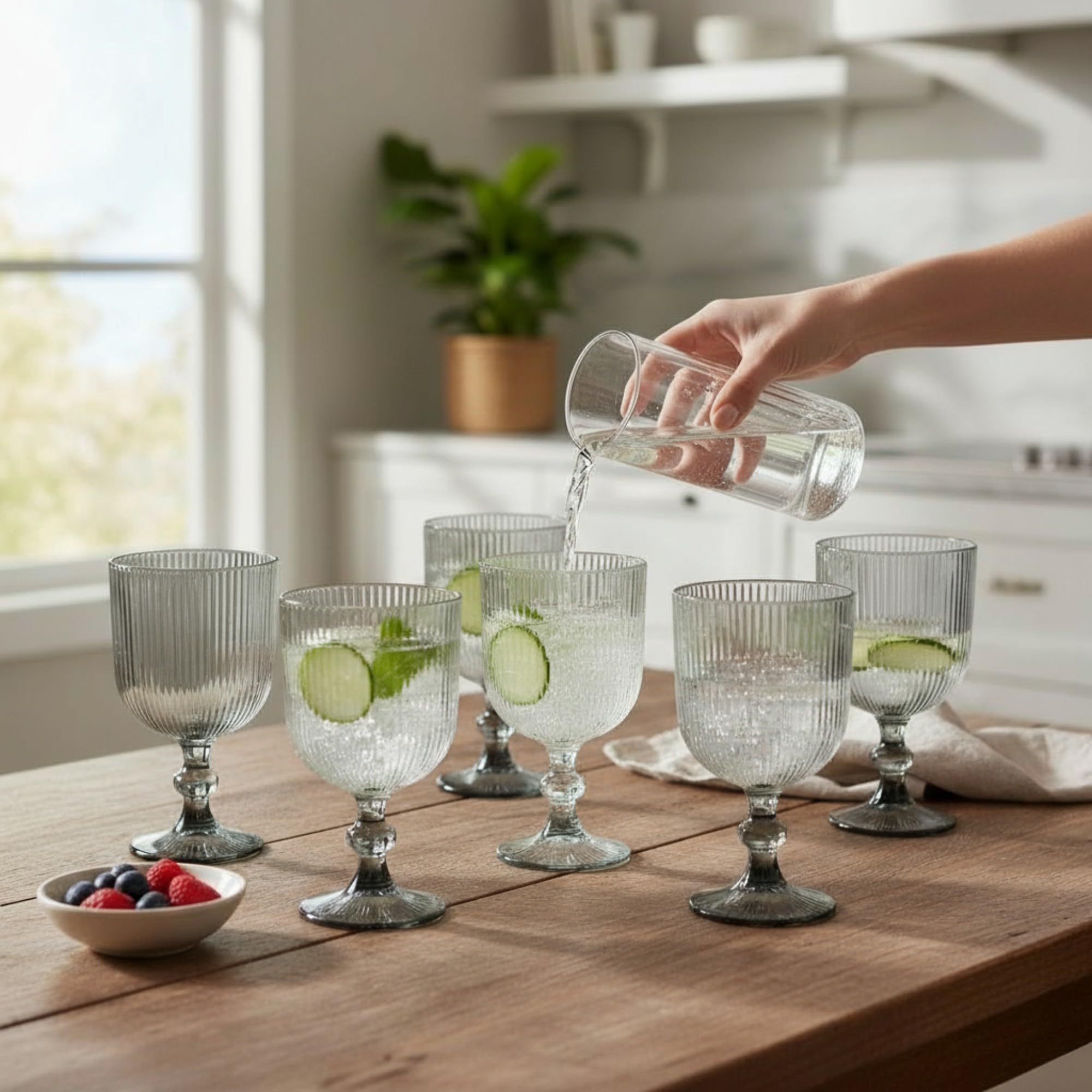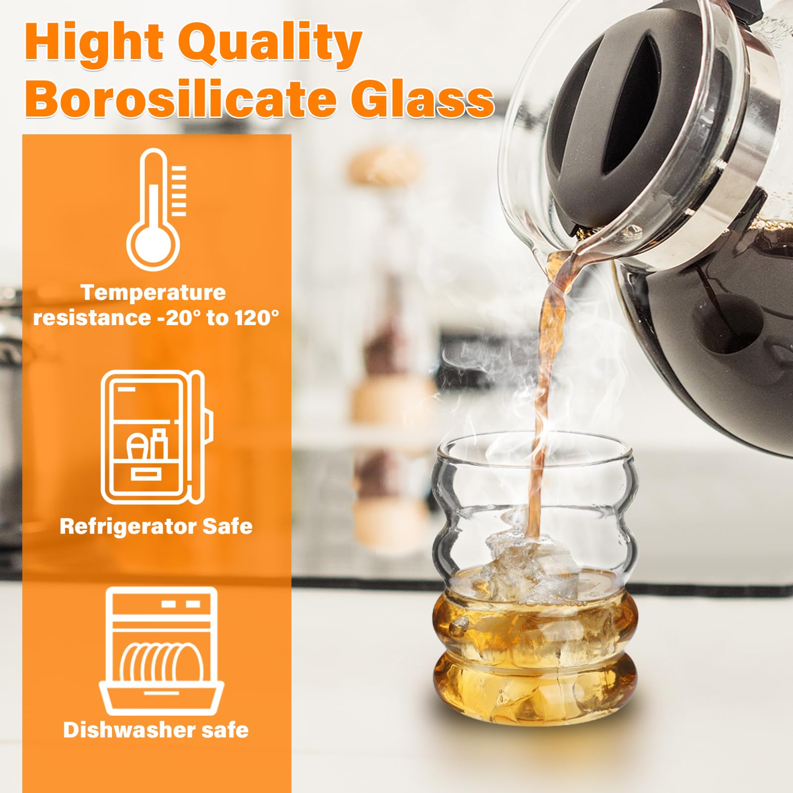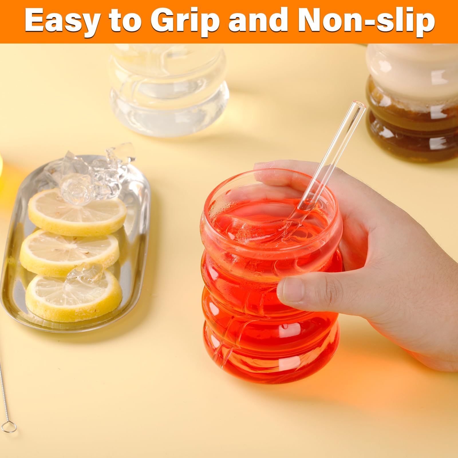 Wow, diese gerippten Gläser sehen einfach mega aus! Das 2er-Set mit dem coolen Wellen-Design bringt sofort Urlaubsfeeling in deine vier Wände. Mit 320ml Fassungsvermögen perfekt für Longdrinks, Cocktails, Smoothies oder einfach nur Wasser - alles schmeckt gleich besser! Aus robustem Borosilikatglas gefertigt, sind sie spülmaschinenfest und halten was aus. Die mitgelieferten Glas-Strohhalme sind nicht nur nachhaltig, sondern sehen auch super stylisch aus. Mit 7,8cm Durchmesser und 12cm Höhe passen sie gut in die Hand und stehen stabil. Besonders praktisch: Die Reinigungsbürste für die Strohhalme ist gleich mit dabei - so bleibt alles sauber! Ob für die eigene Home-Bar, für Partys oder einfach für den täglichen Geben - diese Gläser machen immer eine gute Figur. Das europäische Retro-Design ist total im Trend und passt in jede Einrichtung. Einfach auspacken, reinigen und genießen - deine Gäste werden begeistert sein!