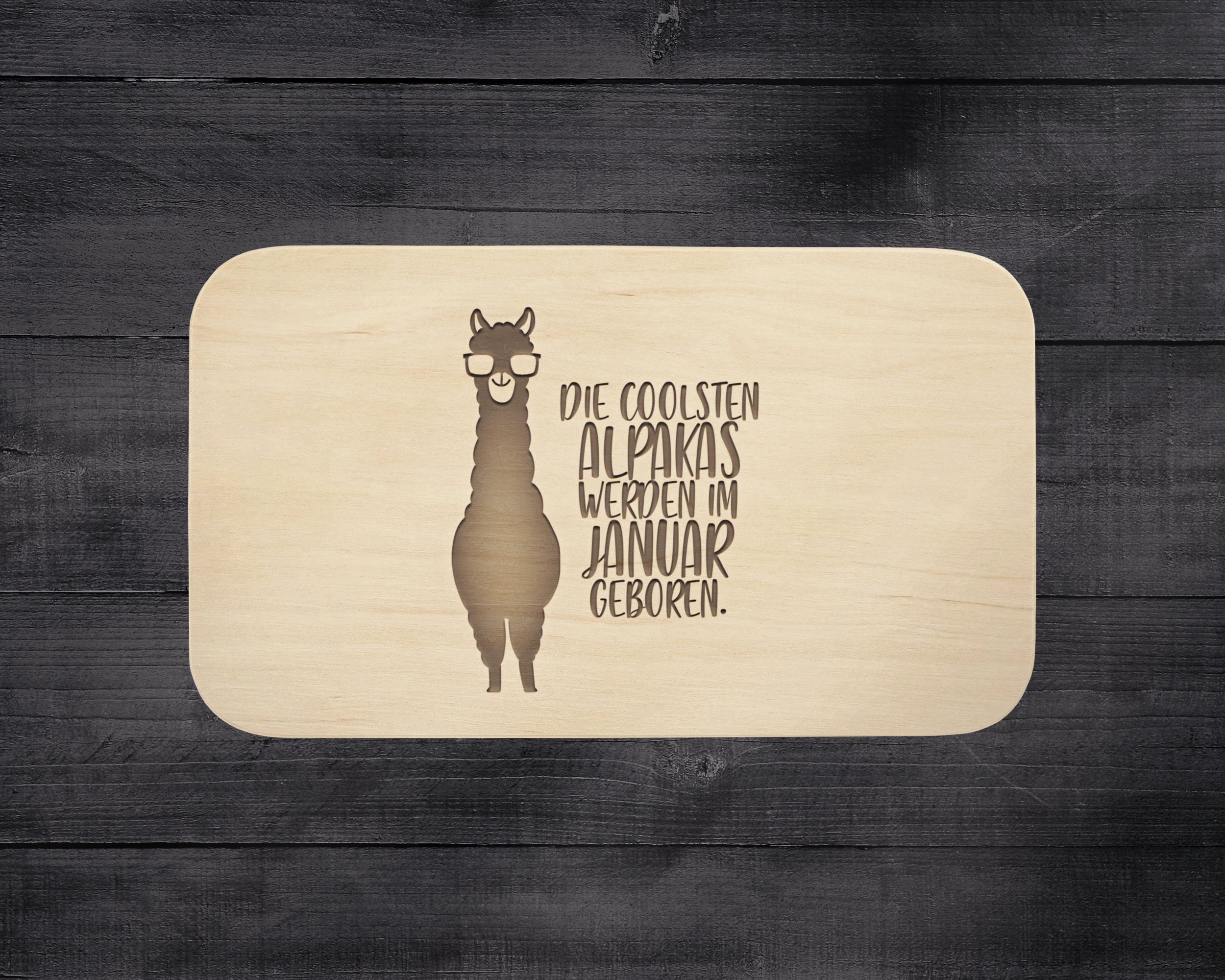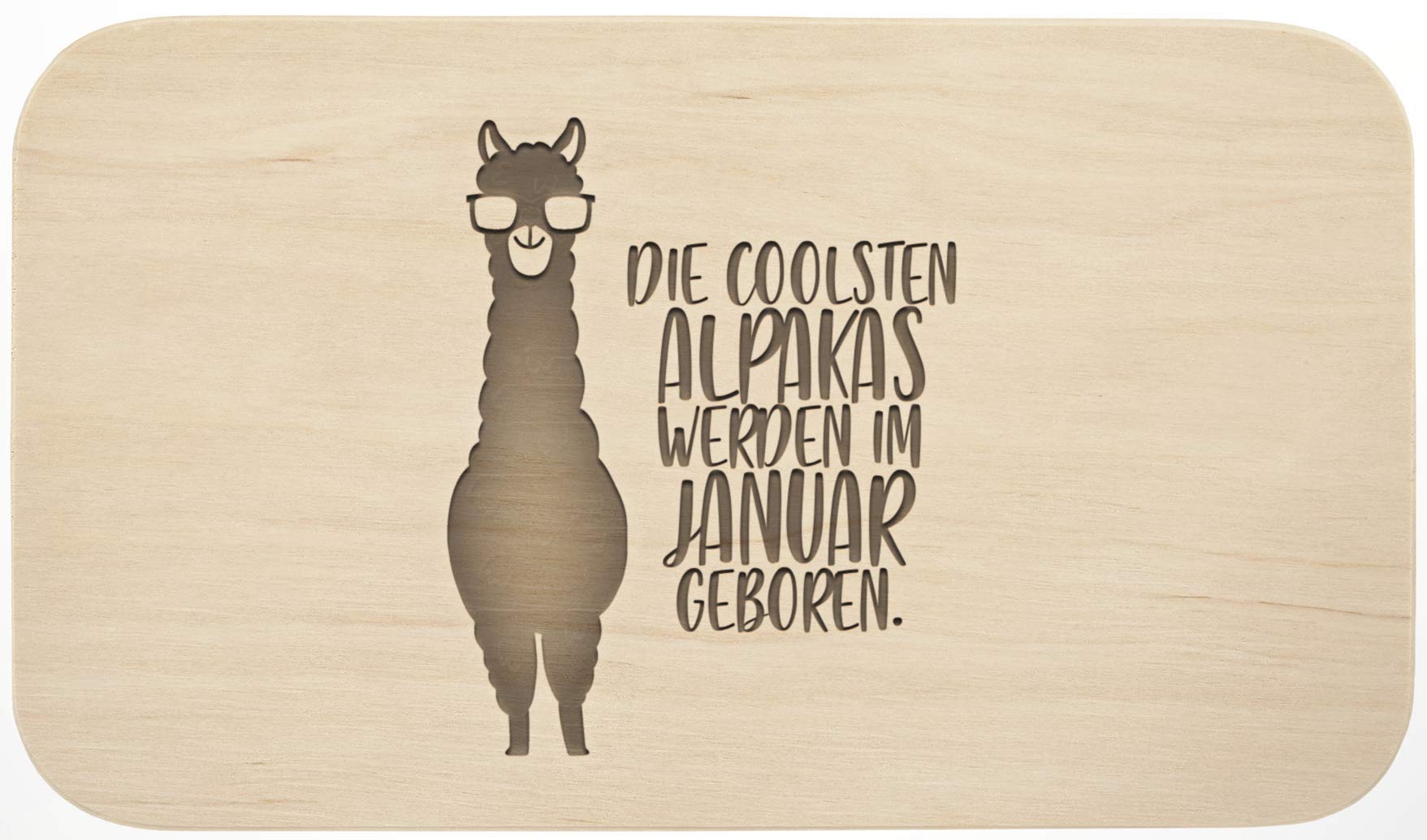Lustiges Frühstücksbrett mit 'Die coolsten Alpakas werden im Januar geboren' Gravur! Aus hochwertigem Ahornholz, in Deutschland graviert. Perfekt für Brotzeit, Frühstück oder als Schneideunterlage. Tolles Geschenk zu Geburtstag, Weihnachten oder anderen Anlässen. Vor Gebrauch einölen für bessere Haltbarkeit. Nur Handwäsche - nicht in Spülmaschine! Ein echter Hingucker in jeder Küche. Für Alpaka-Fans und alle die humorvolle Küchenaccessoires lieben!