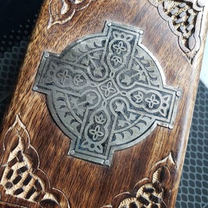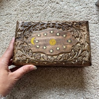 Für alle spirituellen Seelen: Diese wunderschöne Tarotbox aus Buchenholz ist einfach magisch! Mit dem eingravierten 'Königin der Zauberstäbe'-Motiv auf dem Deckel strahlt sie pure positive Energie aus. Die Box ist perfekt um deine Tarot- oder Orakelkarten, kleine Kristalle, Weihrauch, Schmuck oder andere spirituelle Werkzeuge sicher aufzubewahren. Die Innemaße von 13x8,2x4,5cm bieten genug Platz für die meisten Standard-Decks plus ein paar zusätzliche Kleinigkeiten. Jede Box ist aus naturbelassenem, unbehandeltem Holz gefertigt - mit individuellen Maserungen und natürlichen Unvollkommenheiten, die sie einzigartig machen. Perfekt zum Aufladen deiner Decks und um eine heilige Aufbewahrungsstätte für deine spirituellen Schätze zu schaffen. Ob für Anfänger oder erfahrene Praktiker - diese Holzkiste wird zu einem besonderen Teil deiner spirituellen Reise. Einfach hinlegen, deine Lieblingskarten und Kristalle reinlegen und die magische Energie genießen!