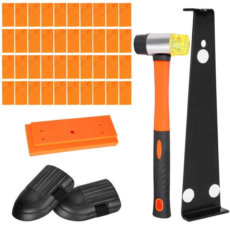 Professionelle Bodenverlegung leicht gemacht! Dieses 43-teilige Set enthält alles, was du für Laminat-, Vinyl- oder Holzböden brauchst. Inklusive Gummihammer mit Doppelkopf, Rückholhaken, Klopfblock und 40 Abstandshaltern. Passt für Bodenstärken von 7-15mm. Die gummierten Werkzeuge schützen die Bodenoberfläche vor Beschädigungen. Einfache Handhabung - auch für Heimwerker geeignet. Spare Zeit und Nerven bei deinem Renovierungsprojekt. Perfekt für Mietwohnungen, Eigenheime oder gewerbliche Objekte. Mit diesem Set wird die Bodenverlegung zum Kinderspiel!