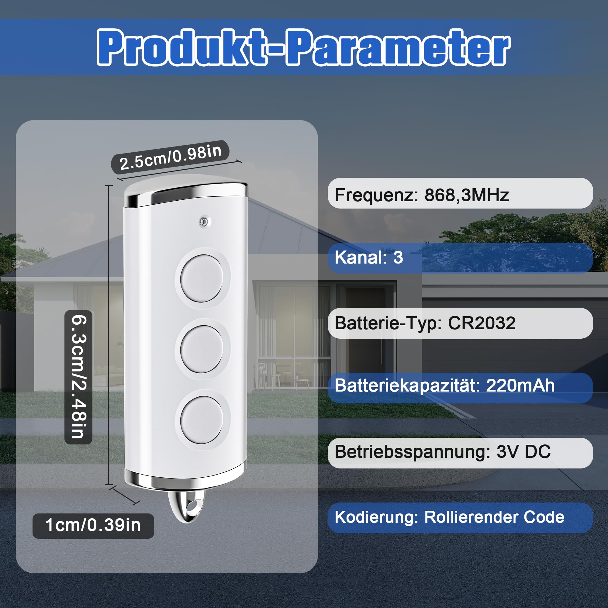Hast du deine Garagentor-Fernbedienung verloren oder brauchst einfach eine Ersatz? Diese praktischen Handsender sind die Lösung! Speziell für Hörmann Garagentoröffner mit 868MHz und Rolling-Code-Technologie (blaue LED) entwickelt. Einfach den Code deiner Originalfernbedienung kopieren - keine komplizierte Programmierung nötig. Mit 4 Tasten kannst du bis zu 4 verschiedene Tore steuern. Das metallverstärkte Design ist viel robuster als billige Plastik-Fernbedienungen und die praktische Abdeckung verhindert versehentliches Drücken. Klein genug für den Schlüsselbund, aber groß genug, um sie nicht zu verlieren. Wichtig: Nur kompatibel mit Hörmann Modellen wie HSE4-868-BS, HSE2-868-BS, HS4-868-BS und anderen mit blauer LED. Passt nicht zu Modellen mit fester Codierung (rote LED). Mit 2 Stück im Set hast du immer Ersatz parat oder kannst Familienmitgliedern einen geben. Einfach programmieren und dein Garagentor öffnet sich wieder bequem per Funk!