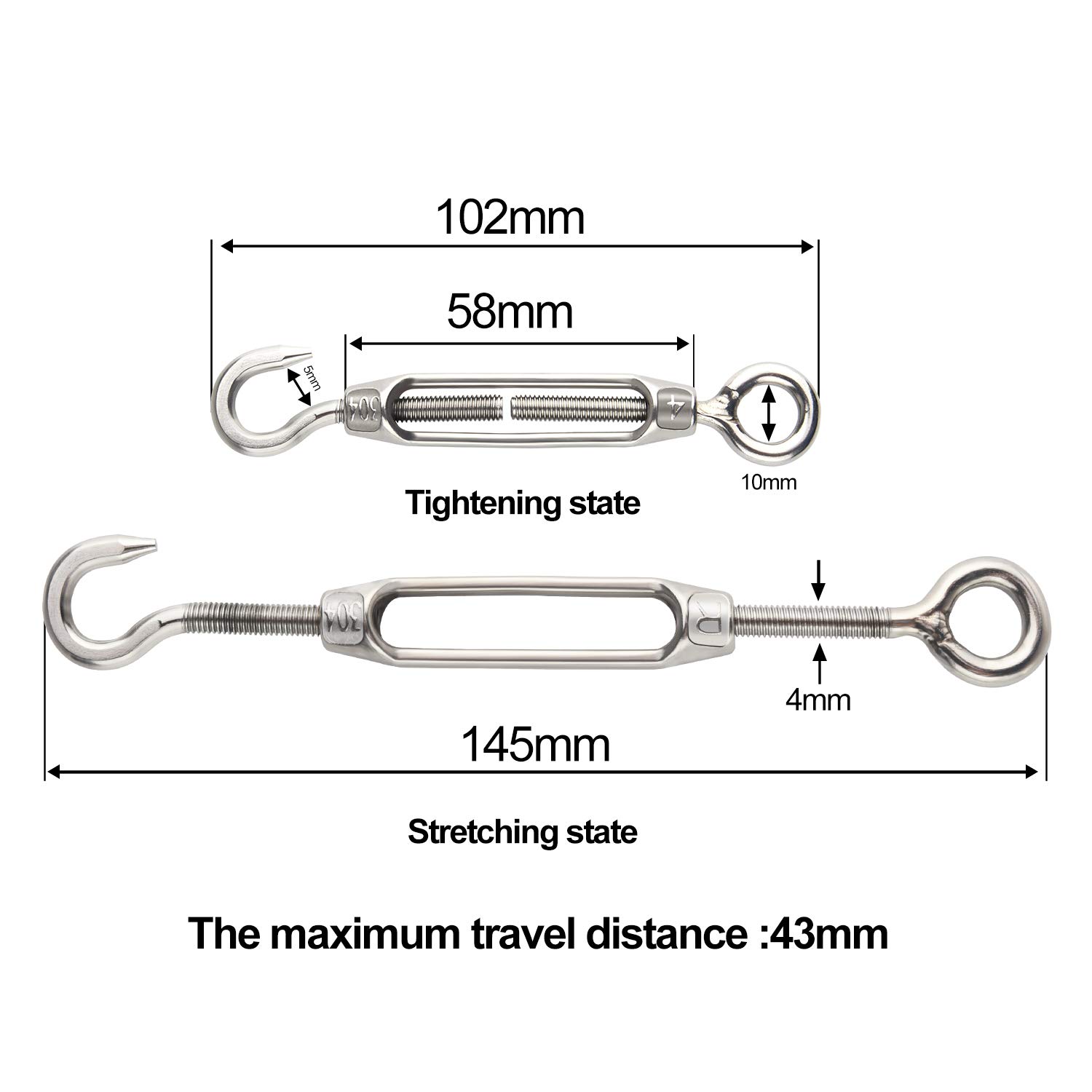 Handwerker und Heimwerker, dieses Spannschloss aus 304 Edelstahl ist ein echter Allrounder! Mit M16-Gewinde und Haken-Haken-Ausführung perfekt zum Spannen von Drahtseilen, Kabeln und Seilen. Korrosionsbeständig, wasserdicht und mit hoher Zugfestigkeit - einfach langlebig und sicher in der Anwendung. Ideal zum Binden, Befestigen und Einstellen der Spannung von Seilsystemen. Ob für Stahlseile, Antennen, Wäscheleinen oder andere Anwendungen - dieses Spannschloss macht jede Spannarbeit zum Kinderspiel. Einfach zu bedienen und frei in der Reichweite verstellbar. Ein unverzichtbares Tool für jede Werkstatt!