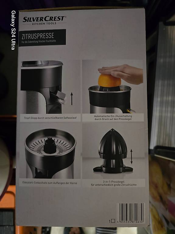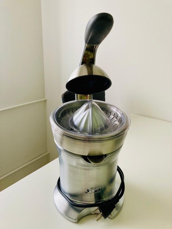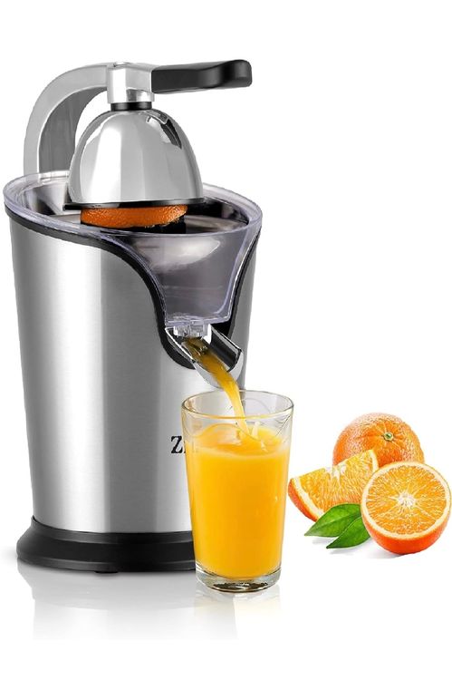 Frisch gepresster Orangensaft am Morgen - was gibt's Schöneres? Mit dieser elektrischen Zitruspresse aus Edelstahl wird's zum Kinderspiel! Der starke 650W Motor presst in Sekunden den kompletten Saft aus Orangen, Zitronen, Grapefruits und anderen Zitrusfrüchten. Das geniale Hebel-System macht das Pressen super einfach - kein Drücken und Quetschen mehr von Hand! Mit zwei austauschbaren Kegeln passt sich die Presse an jede Fruchtgröße an. Das Anti-Tropf-System verhindert lästiges Kleckern und die rutschfesten Füße sorgen für Stabilität während des Betriebs. Aus robustem Edelstahl gefertigt, ist sie nicht nur langlebig sondern sieht auch noch richtig stylisch in deiner Küche aus. Kompakt im Design nimmt sie kaum Platz weg und ist leicht zu reinigen. Perfekt für Familien, Gesundheitsbewusste oder alle, die morgens schnell einen vitaminreichen Start brauchen. Einfach Frucht aufsetzen, Hebel drücken - und schon fließt der frische Saft!