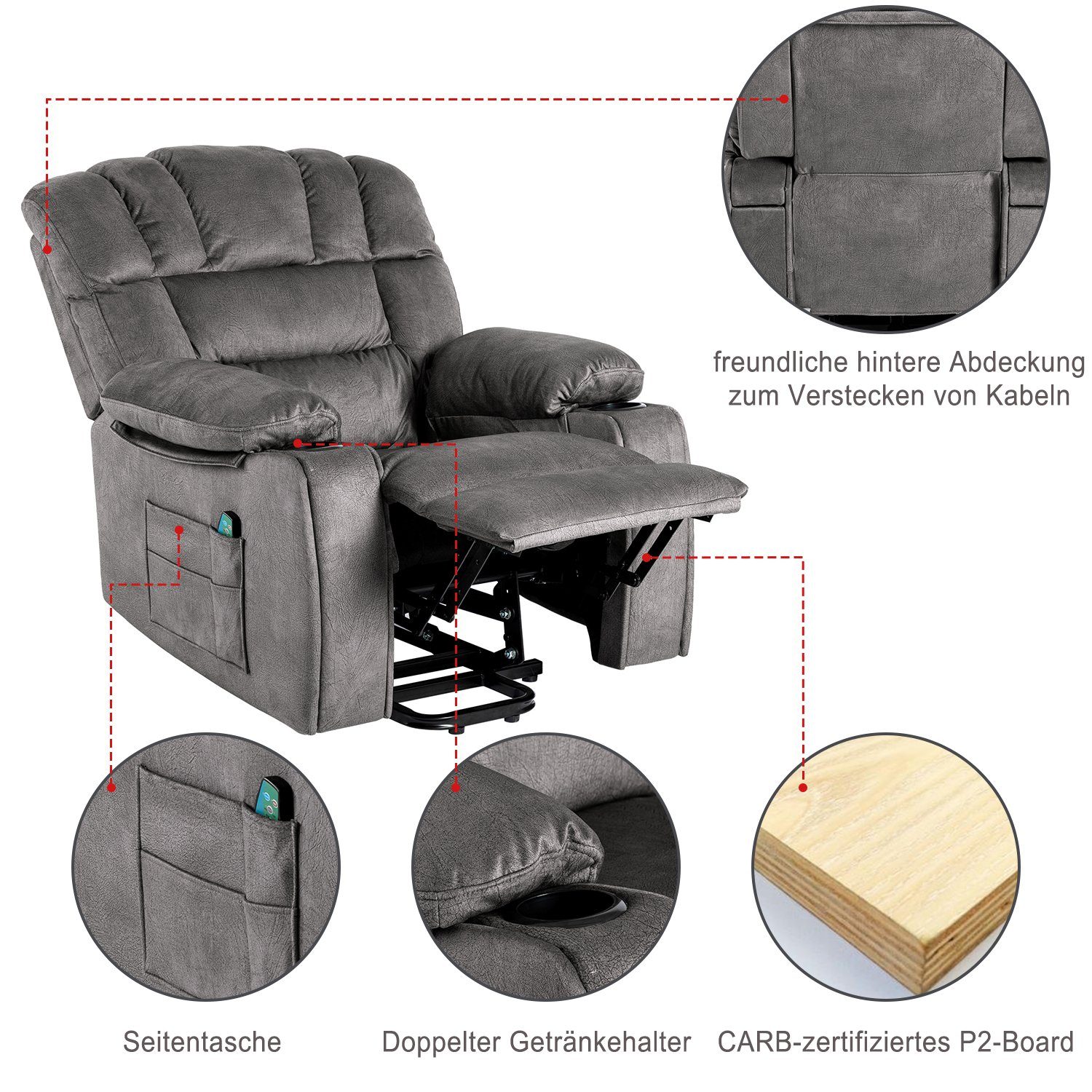 Endlich richtig entspannen! Dieser Merax Relaxsessel mit passendem Hocker ist deine Wohlfühloase für zu Hause. Mit 10 verstellbaren Positionen findest du garantiert deine Lieblingsposition - ob zum Lesen, Fernsehen oder für ein kleines Nickerchen. Der robuste Massivholzrahmen garantiert Stabilität, während die weiche Polsterung für himmlischen Komfort sorgt. Praktische Seitentaschen halten Fernbedienung, Buch und Handy immer griffbereit. In dezentem Grau passt der Sessel perfekt in jedes Wohnzimmer oder Schlafzimmer. Maße: 69x96x60 cm - ideal für gemütliche Stunden. Einfach zurücklehnen, die Beine auf den Hocker legen und den Tag genießen. Dein persönlicher Wellness-Bereich wartet auf dich!
