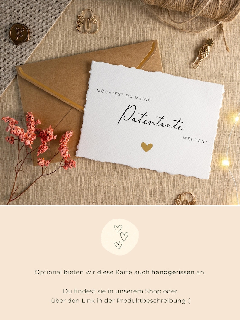 Wie fragt man eigentlich jemanden, ob sie Patentante werden möchte? Ganz einfach: mit diesem total süßen Geschenkset! Da ist eine richtig schön gestaltete Karte mit dem Spruch 'Möchtest du meine Patentante werden?' und einem handgemachten Schlüsselanhänger aus Holzperlen dabei. Der Anhänger hat ein Herz, Regenbogen und geometrische Formen - das steht für Liebe und Hoffnung. Super praktisch: Das Design ist modern und schlicht, passt also zu jedem Geschmack. Du kannst das Set nicht nur für die Paten-Frage verwenden, sondern auch zur Taufe oder einfach als Überraschung im Alltag. Die Qualität ist richtig hochwertig - die Karte ist auf festem Papier gedruckt und der Holz-Anhänger fühlt sich robust an. Das Beste: Es ist mehr als nur eine Karte, sondern ein richtiges Erinnerungsstück, das die Patentante immer bei sich tragen kann. Perfekt also, wenn du nach einer besonderen Idee suchst, um diese wichtige Frage zu stellen. Die Emotionen kommen dabei ganz von alleine - versprochen! Und keine Sorge: Auch wenn's mal im Alltag etwas unsanft behandelt wird, hält das Set locker stand.
