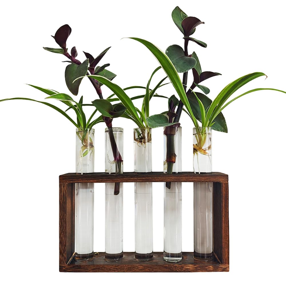 Coole Idee für Pflanzen-Fans! Dieses Set mit 5 Reagenzgläsern auf einem massiven Holzständer ist perfekt für Hydrokultur und Stecklinge. Die Gläser aus hochwertigem Borosilikatglas sind super transparent - du kannst den Wurzeln beim Wachsen zusehen! Der schwarze Holzständer (25x3,8x4 cm) ist stabil und sieht modern aus. Einfach die Gläser in die vorgebohrten Löcher stecken, Wasser einfüllen und deine Pflanzen einsetzen - mehr Aufwand ist nicht nötig! Ideal für Kräuter, Sukkulenten, Ableger oder einfach als dekorative Arrangements. Die mitgelieferte Reinigungsbürste macht die Pflege super einfach. Sieht nicht nur stylish aus auf dem Schreibtisch, Regal oder Fensterbrett, sondern ist auch ein tolles Geschenk für Pflanzen-Liebhaber! Bring Natur in dein Zuhause und beobachte wie deine Pflanzen gedeihen - mit diesem einzigartigen Pflanzset wird's zum echten Hingucker! Einfach aufstellen und sich am Wachstum erfreuen!