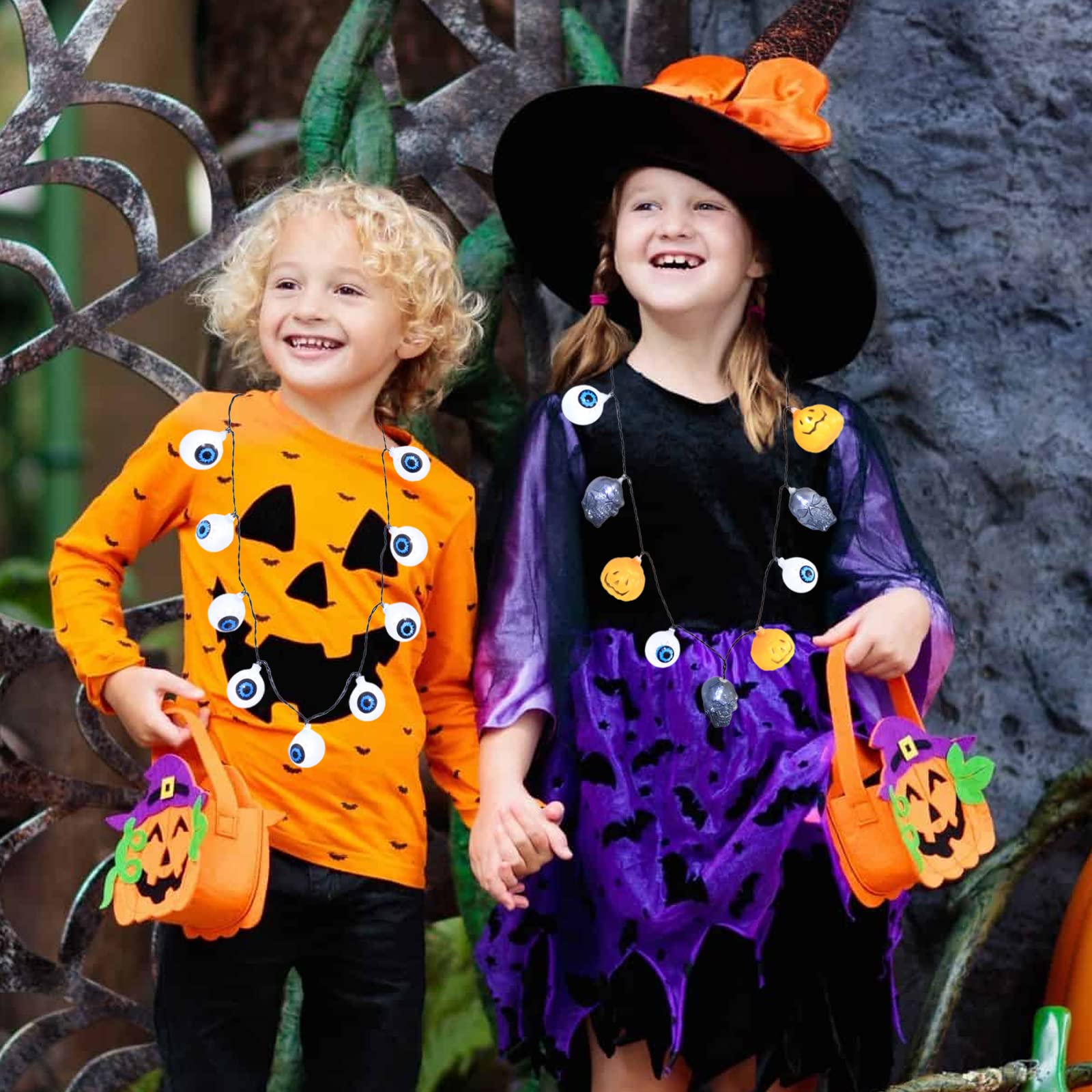 Boo! Mach dich bereit für die gruseligste Nacht des Jahres mit diesem mega-coolen Halloween Halsketten Set! Enthalten sind drei verschiedene Ketten: eine mit süßen Geistern, eine mit gruseligen Totenköpfen und eine mit klassischen Kürbissen - alles bunt und glitzernd, genau wie Kinder es lieben. Das Besondere: Jede Kette hat 6 verschiedene Modi (vermutlich Leuchteffekte oder ähnliches), die für extra Spaß sorgen. Aus robustem Kunststoff gefertigt, halten die Ketten auch mal einen wilden Tanz auf der Halloween-Party aus. Perfekt für Jungen und Mädchen ab etwa 6 Jahren, aber auch Erwachsene können damit richtig stylisch aussehen. Ob für die Schule, die Halloween-Party oder wenn du Süßes-oder-Saures sammelst - mit diesen Ketten bist du der Star der Nacht! Super als Geschenk für kleine Hexen und Zauberer oder als Mitbringsel für die Feier. Einfach überziehen und loslegen - mehr Aufwand braucht es nicht für den perfekten Halloween-Look. Die Farben sind knallig und fröhlich, nicht zu gruselig für die Kleinen, aber trotzdem total passend für die Jahreszeit. Hol dir das Set und werde zum Mittelpunkt jeder Halloween-Party!