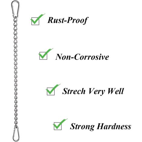 Diese Edelstahlketten sind echte Alleskönner! Mit 57 cm Länge und 3 mm Stärke sind sie robust genug für den Außeneinsatz, aber auch filigran genug für dekorative Zwecke.\n\nPerfekt für den Garten: Ob du Vogelhäuschen aufhängen, Pflanzen ranken lassen oder Windspiele befestigen willst - mit den beiden Karabinern an jedem Ende geht das ratzfatz. Einfach einklinken und fertig!\n\nDie Ketten sind aus hochwertigem Edelstahl - das bedeutet: rostfrei, wetterfest und langlebig. Egal ob Regen, Sonne oder Frost, die Ketten machen alles mit ohne zu rosten.\n\nAber das ist noch nicht alles: Du kannst sie auch als provisorische Hundeleine verwenden, als Kleiderbügel umfunktionieren oder sogar als dekoratives Element im Wohnbereich einsetzen. Der glänzende Edelstahl sieht einfach klasse aus!\n\nDie Montage ist denkbar einfach: Kette um den gewünschten Gegenstand wickeln, Karabiner schließen - fertig. Kein Werkzeug, kein Basteln, keine komplizierten Anleitungen.\n\nIm Set bekommst du zwei Ketten - eine für den sofortigen Einsatz, eine als Reserve oder für ein zweites Projekt. Praktisch, oder?
