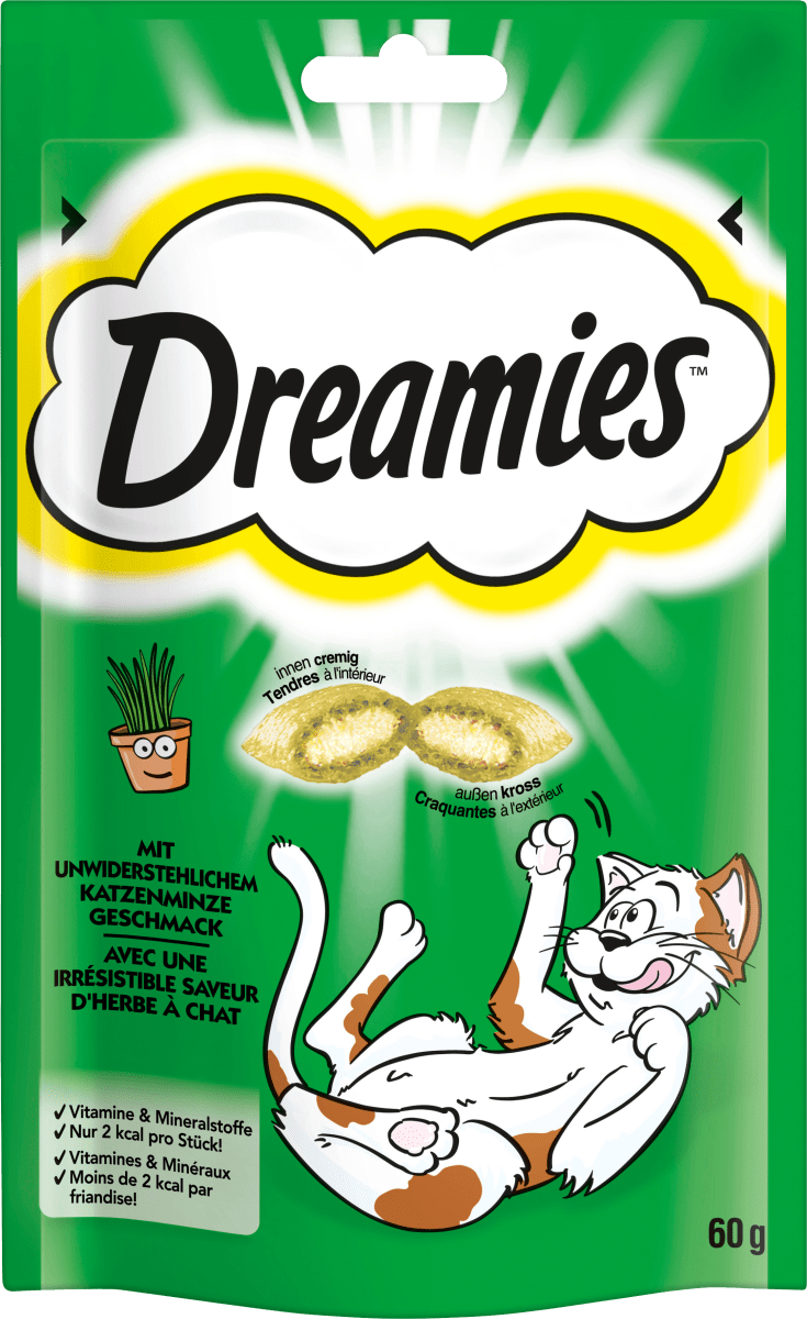 Miau! Deine Samtpfote wird verrückt nach diesen Dreamies Leckerlis sein - besonders mit dem beliebten Katzenminze-Geschmack! Diese Mega Box enthält gleich zwei Beutel à 350g, also genug Vorrat für wochenlangen Snack-Spaß. Die Leckerlis sind außen schön knusprig und innen wunderbar cremig - genau das, was Katzen lieben. Und das Beste: Sie enthalten wichtige Vitamine und Mineralstoffe, aber keine künstlichen Aromen. Mit nur 2 kcal pro Stück sind sie auch super für die schlanke Linie deiner Katze. Egal ob als Belohnung, fürs Training oder einfach nur zum Verwöhnen - diese Dreamies kommen immer gut an. Deine Katze wird dir danken, versprochen! Also, gönn deinem Stubentiger diese leckeren Snacks und sei der Lieblingsmensch deiner Katze. Einfach die Box öffnen und die Schnurr-Maschine anwerfen! Übrigens: Es gibt die Dreamies auch in anderen Geschmacksrichtungen wie Huhn, Thunfisch oder Lachs - falls deine Katze Abwechslung mag.