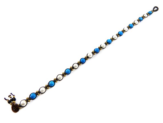• Fußkettchen Makramee Mit Kauri Muscheln - Blau Achat Boho Style
