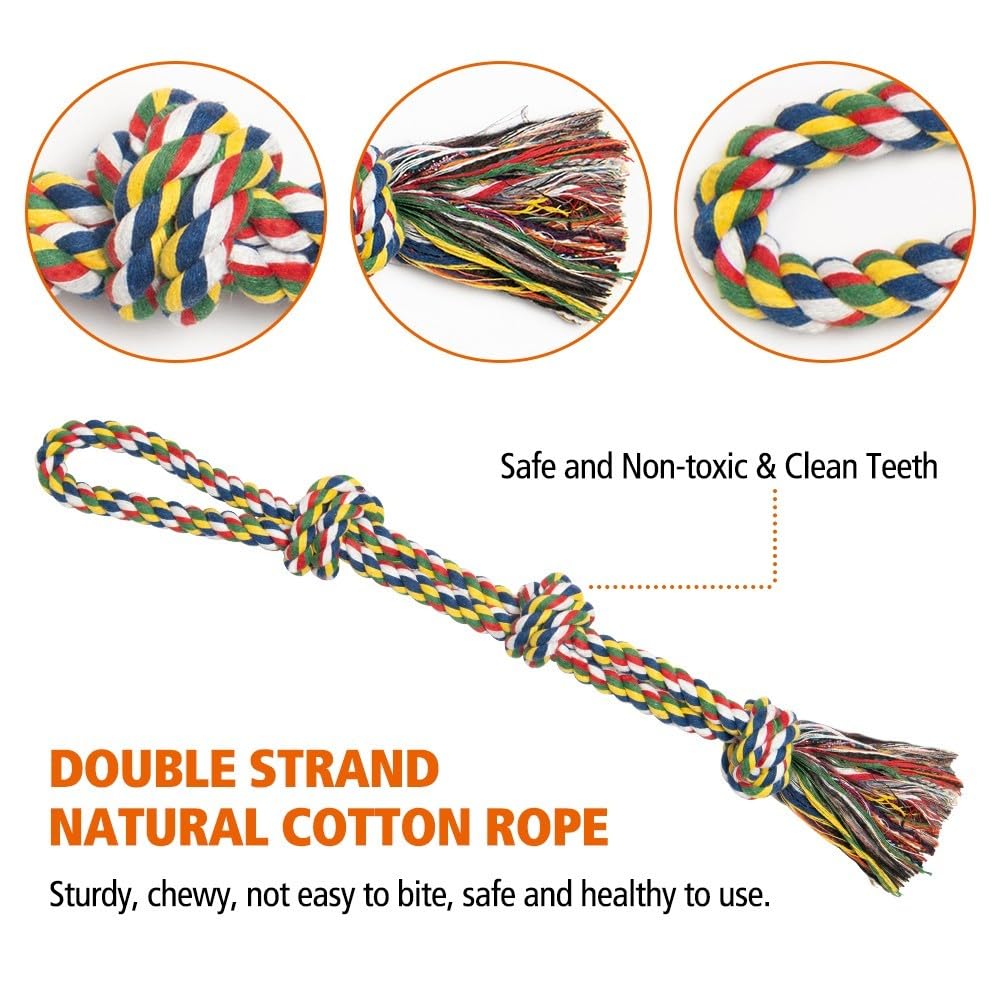 Hey, Hundebesitzer! Dieses geflochtene Baumwollseil ist der Hit für deinen Vierbeiner. Mit 55 cm Länge und mehreren Knoten ist es ideal für Tauziehen und Kauspiele. Die natürliche Baumwolle ist robust und kaubar - auch für stärkere Hunde geeignet. Das Beste: Beim Kauen reinigt dein Hund ganz nebenbei seine Zähne und massiert das Zahnfleisch. So beugst du Zahnstein vor und dein Hund hat Spaß dabei! Die bunten Farben wecken das Interesse und vertreiben die Langeweile. Perfekt für interaktive Spiele - ob drinnen oder draußen. So stärkst du die Bindung zu deinem Hund und hältst ihn gleichzeitig fit. Mit 230 g Gewicht liegt es gut in der Hand (und im Maul). Wenn dein Hund gerne kaut und spielt, aber deine Möbel schon leiden, ist dieses Seil die perfekte Lösung. Einfach werfen, ziehen oder zum Kauen geben - dein Hund wird's lieben! Und du freust dich über einen ausgeglicheneren Vierbeiner.