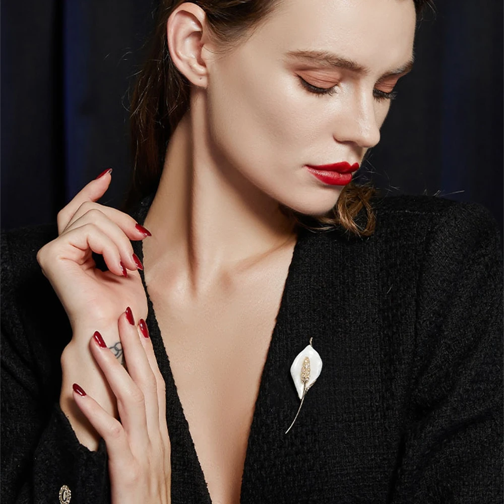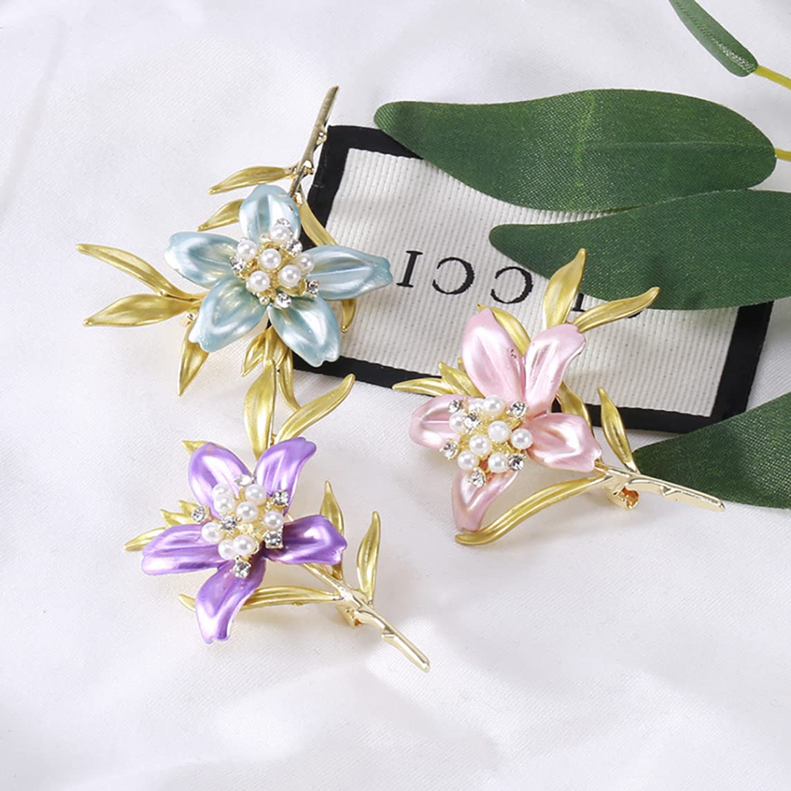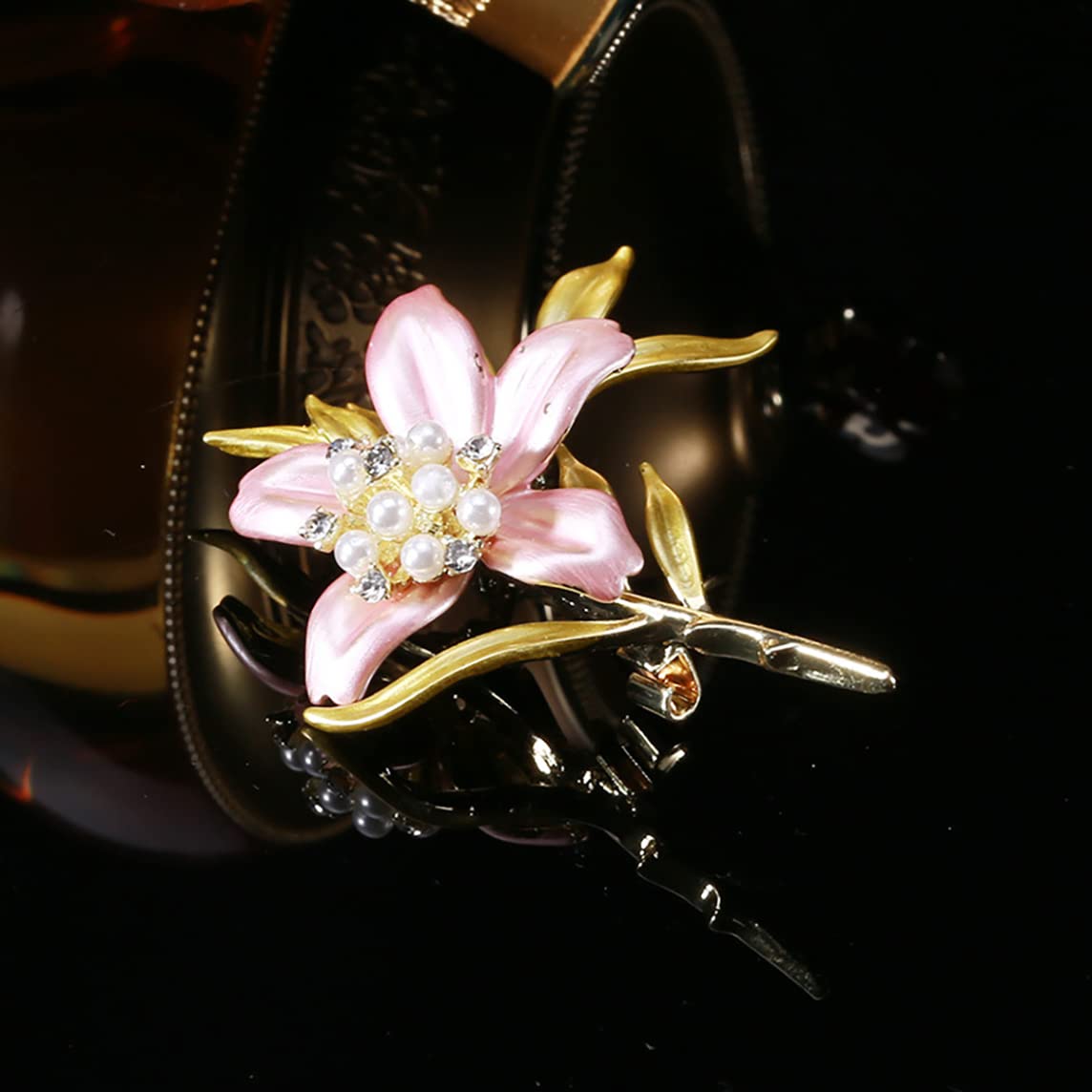 • Lilien Brosche Mit Kristall & Perle - Elegante Blumen Brosche Für Damen