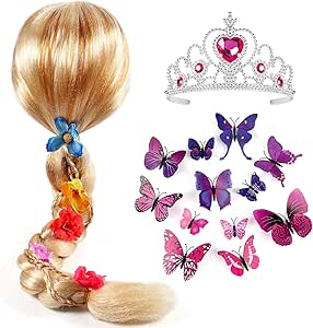 Verwandle deine kleine Prinzessin in eine echte Märchenfigur! Dieses komplett Set enthält alles, was sie braucht: eine wunderschöne geflochtene Perücke, eine glitzernde Krone und einen magischen Zauberstab. Die Perücke aus weichem Fasermaterial verheddert sich nicht und sitzt bequem. Krone und Zauberstab aus hochwertigem Kunststoff mit funkelnden Verzierungen - einfach märchenhaft! Perfekt für Geburtstagsfeiern, Karneval, Halloween, Theateraufführungen oder einfach zum Verkleiden zu Hause. Deine Tochter wird vor Freude strahlen, wenn sie sich in eine echte Prinzessin verwandelt! Einfach anziehen und schon beginnt das magische Abenteuer. Super als Geschenk für kleine Mädchen - ob zum Geburtstag, zu Weihnachten oder einfach als Überraschung. Wichtiger Hinweis: Nicht für Kinder unter 3 Jahren geeignet, wegen verschluckbarer Kleinteile. Unter Aufsicht von Erwachsenen verwenden! Mach deinem Kind eine Freude und lass die Märchenwelt lebendig werden!