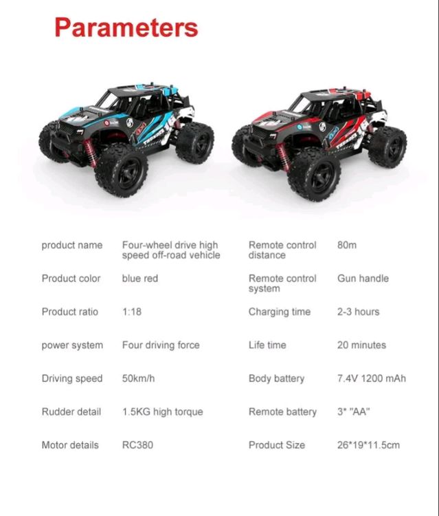 Der Allradantrieb meistert jedes Gelände - ob Teppich, Rasen oder leichte Hindernisse. Die LED-Beleuchtung vorne und hinten sieht nicht nur cool aus, sondern hilft auch bei Dämmerung. 60 Minuten Fahrspaß nach nur 30 Minuten Laden! Perfekt als Geschenk für Kinder ab 16 oder für erwachsene Sammler. Einfach aufladen, Fernbedienung mit AAA-Batterien bestücken und losdüsen!