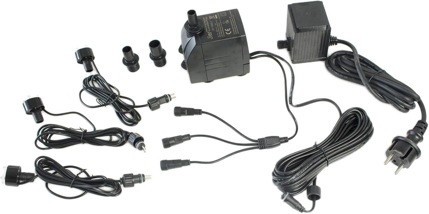 Bring Leben in deinen Garten mit dieser vielseitigen Springbrunnenpumpe! Die 12V-Pumpe mit 350 l/h Leistung ist ideal für Teiche, Bachläufe, Springbrunnen und Wasserspiele. Das verstellbare Durchflussventil ermöglicht dir, die Wasserströmung ganz nach deinen Wünschen einzustellen. Besonderes Highlight: Der integrierte LED-Lichtring mit 6 Leuchten zaubert abends eine magische Atmosphäre. Die Pumpe ist energieeffizient und ultra-leise - perfekt für entspannte Stunden im Garten. Mit dabei sind zwei Düsen für 8mm und 13mm Schläuche. Der wasserdichte Motor garantiert lange Freude, und die Reinigung ist ohne Werkzeug möglich. Einfach anschließen und sofort loslegen! Leistung: 350 l/h | Spannung: 12V | Mit verstellbarem Durchflussventil | LED-Beleuchtung mit 6 Leuchten | Inklusive 2 Düsen (8mm und 13mm) | Eigenschaften: wasserdicht, leise, energieeffizient | Ideal für: Gartenteiche, Springbrunnen, Bachläufe, Aquarien