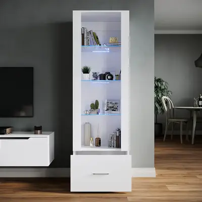 Präsentiere deine Schätze in dieser atemberaubenden Glasvitrine von Aunvla! Mit stolzen 200cm Höhe und eleganter weißer Optik wird dieser Schrank zum absoluten Hingucker in deinem Zuhause. Das Highlight: Integrierte LED-Beleuchtung mit 16 verschiedenen Farbmodi, die du bequem per Fernbedienung steuern kannst! Mit 6 Glastüren, 3 praktischen Schubladen und viel Stauraum bietet dieser Schrank Platz für Bücher, Sammlerstücke, Spielzeug oder Deko. Die schwarzen Aluminiumrahmen und das gehärtete Glas verleihen dem Ganzen einen modernen Touch. Perfekt für Wohnzimmer, Schlafzimmer oder Büro. Die Montage ist dank klarer Anleitung auch für Heimwerker-Anfänger machbar. Und das Beste: Mit 7cm Bodenfreiheit kann dein Saugroboter problemlos darunter putzen! Ein echter Eyecatcher, der Funktionalität und Stil perfekt vereint.