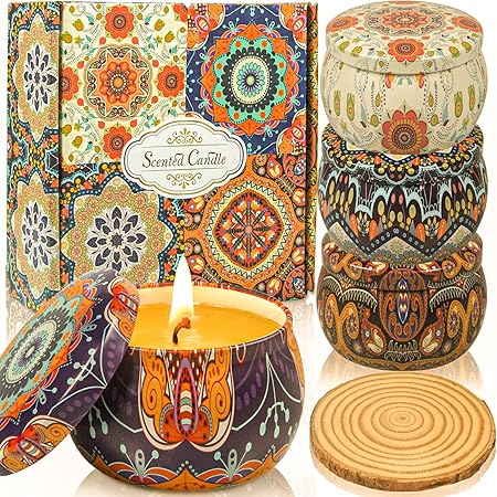 Suchst du nach einem besonderen Geschenk oder einfach nach etwas Entspannung für dich selbst? Dieses Sojawachskerzen-Set von Robin Goods ist perfekt! Es enthält 4 wunderschöne Duftkerzen mit den entspannenden Aromen Lavendel, Jasmin, Vanille und Rose - damit kreierst du zu Hause eine total gemütliche Atmosphäre nach einem anstrengenden Tag. Die Kerzen sind aus 100% natürlichem, biologisch abbaubarem Sojawachs mit Baumwolldochten hergestellt. Jede Kerze wiegt ca. 100g und hat Maße von 6,5 x 4,5 cm (Durchmesser x Höhe). Die Dosen sind so hübsch, dass du sie später weiterverwenden kannst - zum Beispiel für Stifte, Kleinigkeiten oder als Deko. Das Set ist liebevoll verpackt und eignet sich super als Geschenk zum Valentinstag, Muttertag, Geburtstag oder einfach so. Zünde eine Kerze an, lehn dich zurück und genieße den wunderbaren Duft - reine Aromatherapie für dein Zuhause!