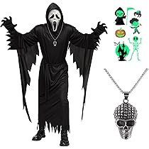 Halloween-Fans und Grusel-Begeisterte, dieses Scream Maske Set ist der absolute Hit für jede Horror-Party! Im Set enthalten ist eine originalgetreue Scream Maske aus leichtem und dennoch robustem Material, die für einen furchterregenden Auftritt sorgt. Dazu gibt es ein Paar Geister-Handschuhe, die im Dunkeln leuchten - das steigert den Gruselfaktor enorm! Die Maske ist atmungsaktiv und bequem zu tragen, selbst über längere Zeit. Die Handschuhe aus flexiblem Stoff passen sich perfekt der Handform an und behindern nicht die Bewegungsfreiheit. Perfekt für Halloween-Partys, Karneval, Mottopartys oder Horror-Events. Egal ob ihr als Grusel-Clown auf die nächste Party geht oder einfach nur Freunde erschrecken wollt - mit diesem Set seid ihr der Star des Abends! Die realistische Maske sorgt für Gänsehaut bei allen, die sie sehen und die leuchtenden Handschuhe machen das Ganze im Dunkeln noch unheimlicher. Einfach überziehen und schon verwandelt ihr euch in die gruselige Ikone aus dem Film. Auch ideal für Cosplay-Veranstaltungen oder als Ergänzung zu eurer Horror-Sammlung. Macht jede Party zu einem unvergesslichen Erlebnis und sorgt für jede Menge Gruselspaß! Einfach anziehen und den Schrecken verbreiten - mehr braucht's nicht für die perfekte Halloween-Stimmung!