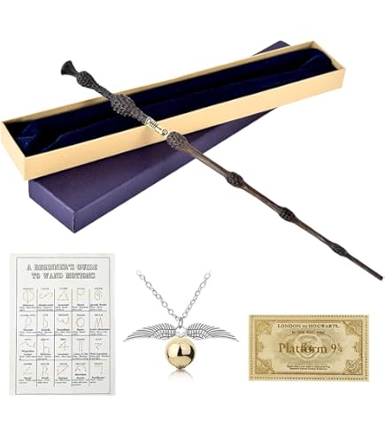 Ab in die magische Welt! Dieser Dumbledore Elderstab bringt echten Zauber in dein Leben. Einfach den Knopf drücken und schon strahlt die Spitze in magischem Licht - fühl dich wie im echten Zauberer-Universum! Der etwa 37 cm lange Zauberstab besteht aus hochwertigem Harz und ist detailgetreu nachgebildet. Das Set enthält alles, was ein angehender Zauberer braucht: 1x leuchtenden Elderstab, 1x Zauberkarte, 1x Eintrittskarte, 1x Landkarte und 1x Zeitumkehrer-Halskette. Perfekt für Cosplay, Karneval, Halloween oder Mottopartys. Wiederaufladbar für lange Magie-Sessions. In einer schönen Geschenkbox verpackt - ideal als Geschenk für Harry Potter Fans jeden Alters. Ob für Kinder oder Erwachsene - mit diesem Zauberstab wird jede Party zum magischen Erlebnis!