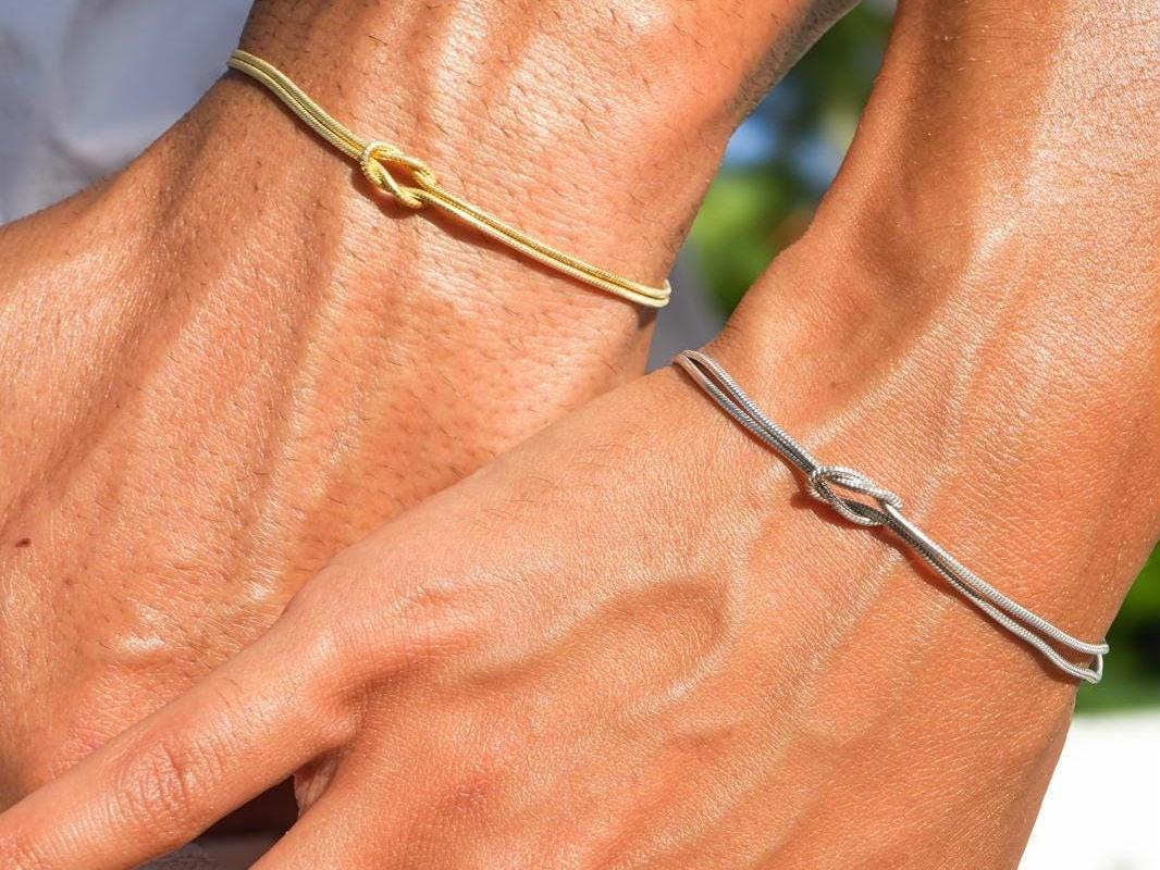 Suchst du nach dem perfekten Geschenk für deine Liebste oder deinen Besten? Diese wunderschönen Partnerarmbänder sind mehr als nur Schmuck - sie sind ein Symbol eurer Verbundenheit! Das kunstvoll gearbeitete Knoten-Design steht für eine unendliche Liebe oder tiefe Freundschaft. Hergestellt aus hochwertiger 14k Gold-Vergoldung, die extra oxidationsresistent beschichtet ist. Super angenehm zu tragen, selbst für Menschen mit empfindlicher Haut - du kannst die Armbänder wirklich 24/7 tragen, ohne dass sie an Glanz verlieren. Mit 17,7cm Länge passen sie sowohl Damen als auch Herren perfekt. Das schlanke Schlangenkettendesign ist zeitlos elegant und lässt sich super mit anderen Armbändern kombinieren. Ob zum Business-Outfit oder zum Abendkleid - diese Armbänder sind immer die richtige Wahl! Geliefert werden sie in einer hübschen Geschenkbox, sodass sie sofort verschenkfertig sind. Perfekt für Valentinstag, Muttertag, Weihnachten oder einfach so - weil jemand dir besonders viel bedeutet. Und falls mal was sein sollte: Unser Kundenservice ist immer für dich da! Egal ob für Pärchen, beste Freundinnen oder Geschwister - diese Armbänder sind ein emotionales Accessoire, das eure Bindung sichtbar macht. Der Knoten erinnert dich jeden Tag daran, dass jemand ganz Besonderes an dich denkt!