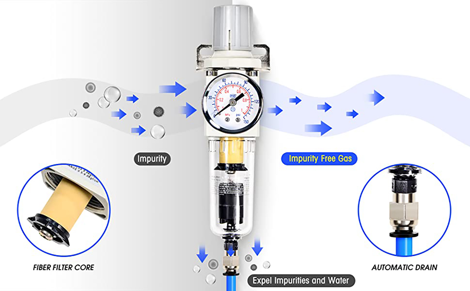 • Druckluftfilter Mit Manometer - 1/2 Zoll Kombifilter 0-150 PSI