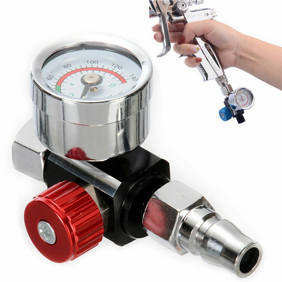 Perfekte Sprüh-Ergebnisse garantiert! Dieses Mini-Luftregulierventil mit Manometer gibt dir die volle Kontrolle über den Druck. Feinmesssteuerung für präzise Einstellung von 0-150 PSI, die Membran passt sich automatisch Schwankungen an für gleichmäßige Ergebnisse. Aus Zinklegierung in schwarz, mit Standard 1/4\ Einlass/Auslass für die meisten Spritzpistolen. Nur 6,5x9 cm klein aber extrem effektiv. Vor dem Versand gründlich getestet, mit 12 Monaten Qualitätssicherung. Einfach zwischen Pistole und Luftschlauch schrauben und den idealen Druck einstellen. Profi-Ergebnisse für Heimwerker - damit wird jedes Lackierprojekt ein Erfolg!