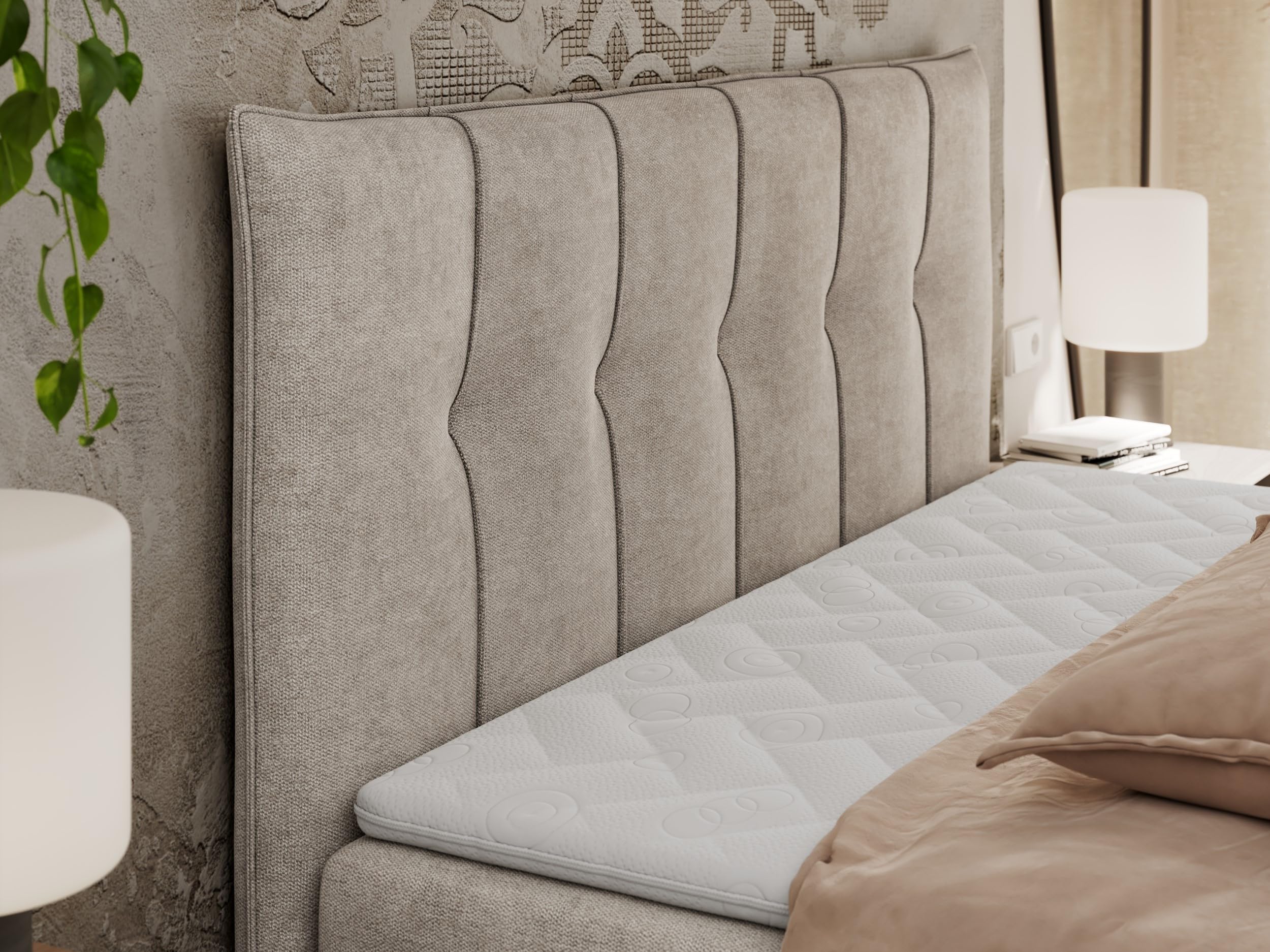 Suchst du nach dem perfekten Bett für erholsame Nächte? Das Imebel Boxspringbett VENUS ist genau das Richtige für dich! Mit einer großzügigen Liegefläche von 200x200 cm hast du mehr als genug Platz - egal ob du Bauch-, Rücken- oder Seitenschläfer bist.\n\nUnd das Beste: Zwei riesige Schubladen unter dem Bett bieten dir super viel Stauraum für Bettwäsche, Decken oder Kleidung. So bleibt dein Schlafzimmer immer schön aufgeräumt, ohne dass du extra Möbel brauchst.\n\nDer weiche Stoffbezug mit dezentem Glanz sieht einfach luxuriös aus und passt perfekt in moderne Einrichtungen. Der mitgelieferte 4 cm dicke Topper sorgt für himmlischen Liegekomfort und passt sich deiner Körperform optimal an.\n\nDu kannst sogar Farbe und Material individuell auswählen - so wird das Bett genau zu deinem Stil passen. Ob klassisch oder modern, dieses Bett macht in jedem Schlafzimmer eine super Figur!\n\nWichtig: Die Lieferung erfolgt bis zur Bordsteinkante, das reintragen musst du selbst organisieren. Aber das ist es absolut wert für so ein tolles Bett!