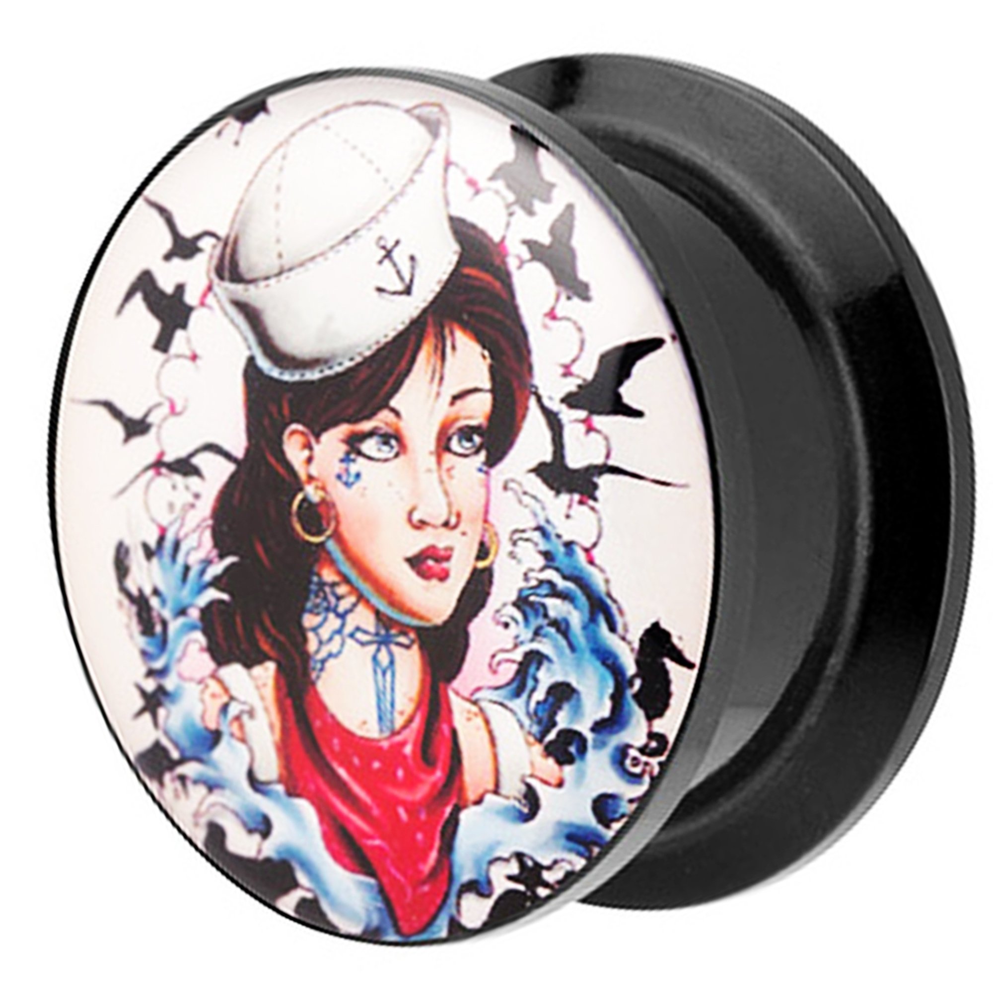 • Piersando Ohr Plug Mit Matrosen Mädchen Motiv - Kunststoff Ohr Tunnel Schwarz