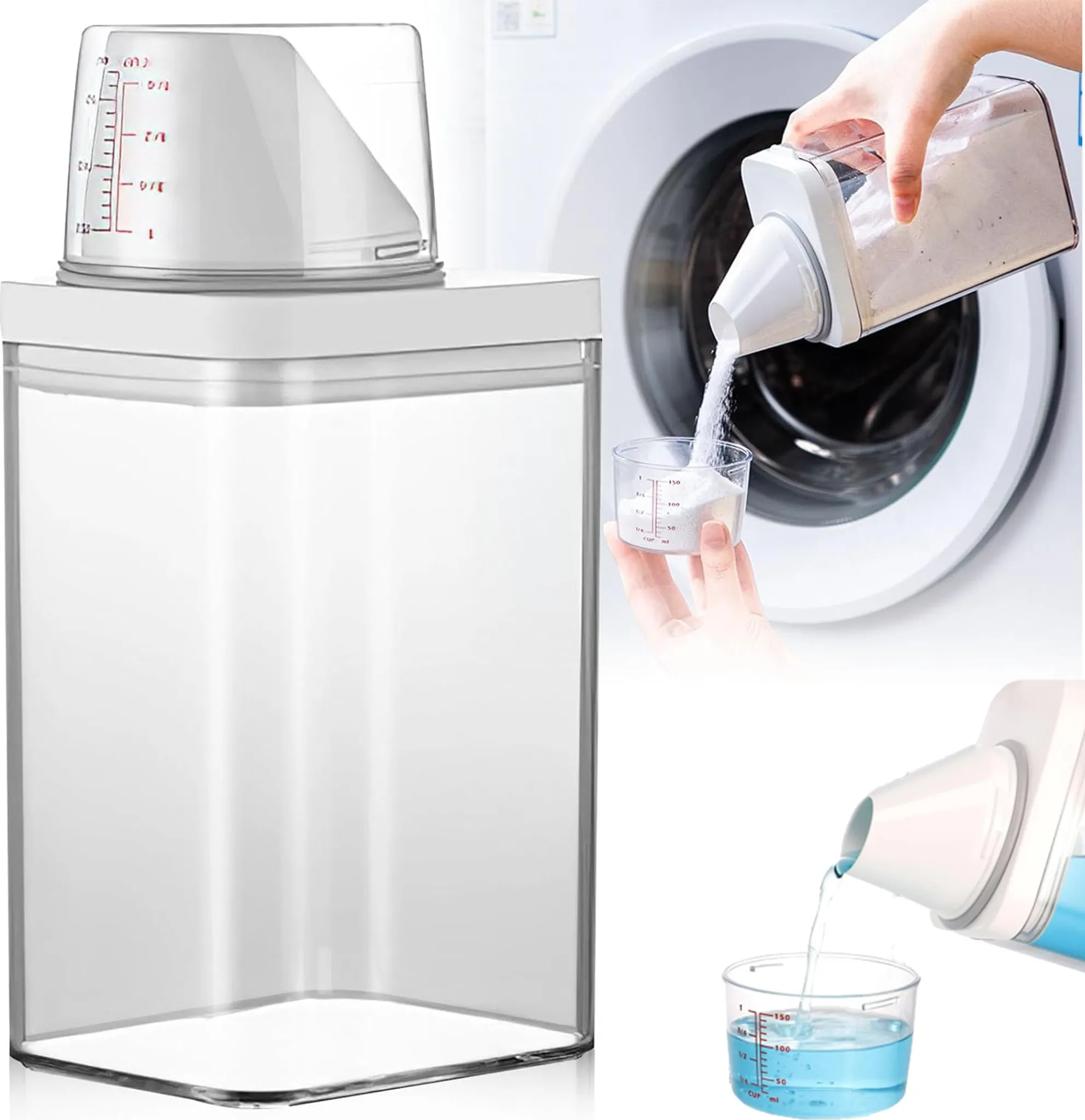 Schluss mit unordentlichen Waschmittel-Verpackungen! Dieser luftdichte Waschmittelspender macht deine Waschküche endlich aufgeräumt. Mit 1100 ml Fassungsvermögen bietet er genug Platz für dein Waschpulver, aber es gibt ihn auch in anderen Größen. Der Clou: Der doppelte Dichtring aus Silikon und TPE hält dein Waschmittel trocken und klumpenfrei. Der praktische Messbecher schraubt sich direkt auf den Ausgießer - so kannst du genau dosieren ohne Kleckerei. Aus lebensmittelechten Materialien (AS-Glas, PP-Deckel, PET-Becher) und BPA-frei, ist der Spender nicht nur für Waschmittel, sondern auch für Reis, Mehl oder Tiernahrung geeignet. Das transparente Design zeigt dir immer den Füllstand, und die griffigen Seiten geben auch mit nassen Händen sicheren Halt. Stell dir vor: Kein herumstehendes Waschmittel-Paket mehr, kein Verschütten, keine Feuchtigkeit im Waschpulver! Deine Waschküche sieht sofort ordentlicher aus und das Waschen wird viel angenehmer. Auch super für die Küche als Vorratsbehälter. Hol dir diesen praktischen Spender und organisiere deinen Haushalt!