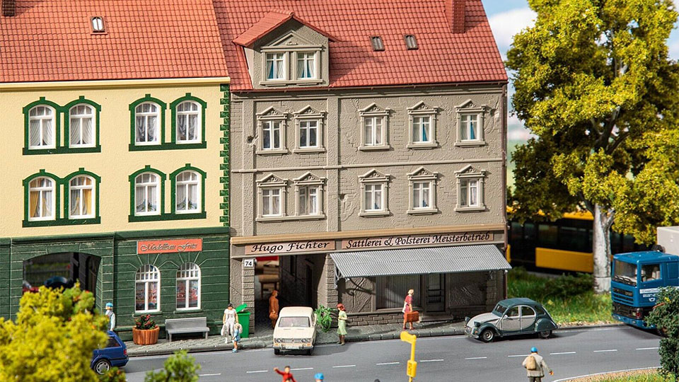 Baue dir deine eigene kleine Stadt! Dieses detailreiche Stadthaus von Faller bringt Leben in deine Modellbahn-Landschaft. Das dreigeschossige Wohnhaus mit gemauerten Fenstereinfassungen sieht aus wie aus einer echten Altstadt. Besonders cool: Im Erdgeschoss befindet sich ein Modellbaugeschäft - wie passend! Die Solarmodule auf dem Dach und die Hinterhofdurchfahrt machen das Ganze besonders realistisch. Mit Maßen von 13,6x12,5x17,4cm passt es perfekt in H0-Landschaften. Die Farben Braun, Grün und Hellgelb harmonieren wunderbar miteinander. Faller Qualität garantiert, dass jedes Detail sitzt - von den Fensterrahmen bis zu den Dachziegeln. Einfach zusammenbauen, bemalen wenn gewünscht und in deine Stadt integrieren. Perfekt für erfahrene Modellbauer aber auch für Einsteiger geeignet. Macht deine Modellbahn-Landschaft sofort authentischer und lebendiger. Ein echter Hingucker der garantiert neidische Blicke auf sich zieht!