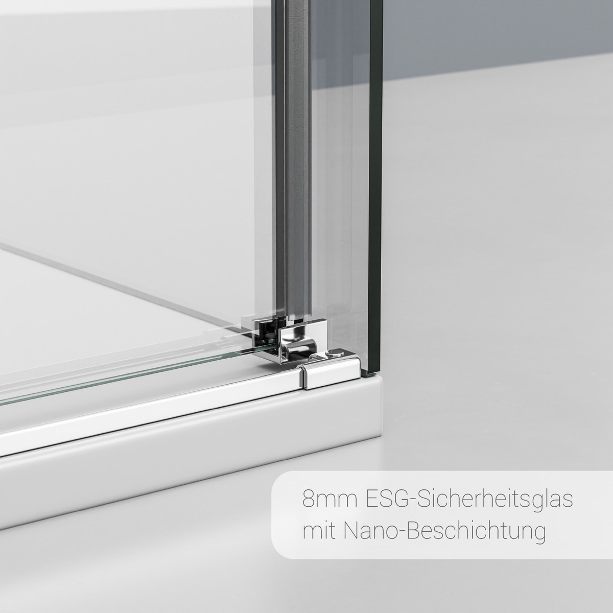Wow, diese Eckdusche von Mai & Mai macht dein Bad zum Wellness-Oase! Mit 80 cm Tiefe und 140 cm Breite bietet sie richtig viel Platz. Das coole 8 mm ESG-Sicherheitsglas hat beidseitig eine NANO-Beschichtung - putzen ist kaum noch nötig! Die Schiebetür läuft super leicht auf den Messingrollen und die Alu-Profile gleichen Wandunebenheiten bis 10 mm aus. Montiert wird sie einfach rechts oder links, wie es bei dir passt. Inklusive 4 cm hoher Duschtasse - alles dabei für die komplette Installation. Die PVC-Dichtungen und Alu-Bodenleiste sorgen für absolute Dichtheit. Kein lästiges Putzen mehr, das Glas perlt einfach ab. Höhe 195 cm, Klarglas - sieht super edel aus! Deine tägliche Dusche wird zum Erlebnis!
