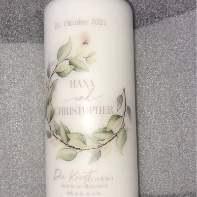 • Personalisiert Hochzeitskerze Mit Namen & Datum | Eukalyptus Design | 20x8cm