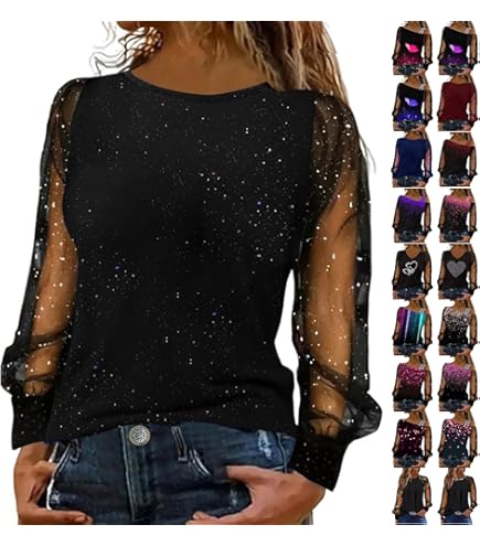 Hey, suchst du was richtig Festliches für die nächste Party? Dieses Glitzer-Top ist perfekt für Silvester, Feiern oder besondere Anlässe! Der Pailletten-Druck glitzert total schön und gibt dir diesen besonderen Glamour-Look. Mit den 3/4 Ärmeln und dem klassischen Rundhalsausschnitt sitzt es super bequem und betont deine Figur ohne einzuengen. Das Material ist angenehm weich - du kannst es also den ganzen Abend tragen ohne dass es kratzt. Und keine Sorge wegen der Größe: Es gibt verschiedene Größen, auch für Curvy-Ladies! Ob zum Rock, zur Hose oder zum Jeans - dieses Top lässt sich super kombinieren. Perfekt für alle, die auffallen wollen ohne sich unwohl zu fühlen. Einfach anziehen und strahlen!