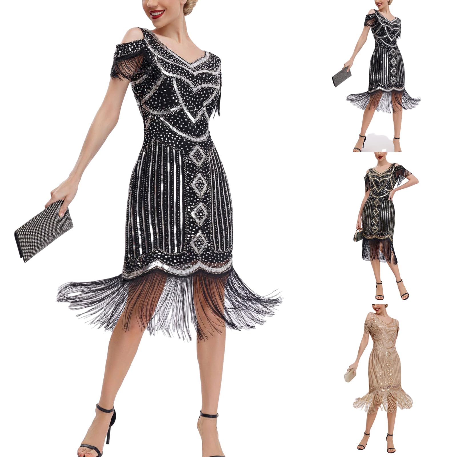 Wow, dieses Charleston Kleid ist der absolute Hingucker für jede 20er Jahre Party! Mit den funkelnden Pailletten und den charmanten Fransen wirst du garantiert zur Königin der Tanzfläche. Der ärmellose Schnitt mit dem sexy V-Ausschnitt vorne und hinten betont deine Figur perfekt und zeigt dein dekolté und den Rücken auf elegante Weise. Aus hochwertigem Polyester gefertigt, fühlt sich das Kleid super weich und angenehm auf der Haut an - ideal auch für längere Tanzabende. Perfekt nicht nur für Gatsby Partys, sondern auch für Karneval, Halloween, Cocktailpartys oder Hochzeiten im Vintage-Stil. Einfach Handwäsche oder chemische Reinigung empfehlenswert, damit du lange Freude an diesem besonderen Stück hast. Mit diesem Kleid wirst du definitiv alle Blicke auf dich ziehen!