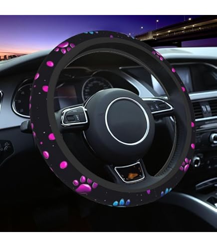 Hey, dieser Lenkradbezug mit den süßen Pfotenabdrücken ist echt praktisch! Mit 38 cm Durchmesser passt er auf die meisten Autos und ist super einfach zu montieren - einfach drüberziehen und fertig. Das Neopren-Material ist weich, atmungsaktiv und saugt Schweiß super auf. Egal ob bei Sommerhitze oder Winterkälte - dein Lenkrad ist immer angenehm zu greifen und deine Hände rutschen nicht ab. Neben dem coolen Look mit den Pfotenabdrücken schützt der Bezug dein Original-Lenkrad vor Verschleiß, Schmutz und Alterung. Die Installation geht ganz ohne Werkzeug und ist in wenigen Minuten erledigt. Perfekt als Geschenk für Tierliebhaber oder einfach um dem Auto-Innenraum mehr Persönlichkeit zu verleihen. Macht das Fahren gleich viel gemütlicher und sieht dazu noch total niedlich aus!