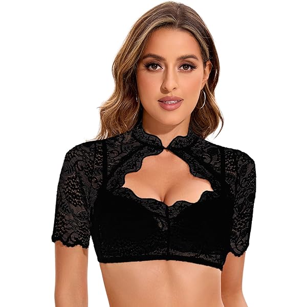 Dirndl Bluse Damen Schwarz - Spitzenbluse Mit Puffärmeln Für Tracht
