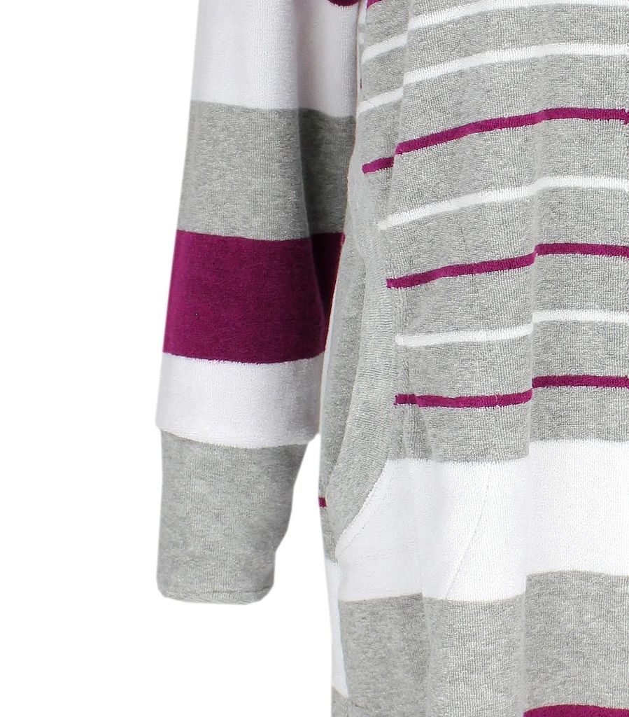 Dieser stylische Bademantel von Aquarti ist der perfekte Begleiter für gemütliche Morgen und entspannte Abende! Aus weichem 100% Baumwolle-Frottee gefertigt, fühlt er sich super kuschelig auf der Haut an und saugt Feuchtigkeit super schnell auf. Das modische Streifen-Design macht ihn zum echten Hingucker.